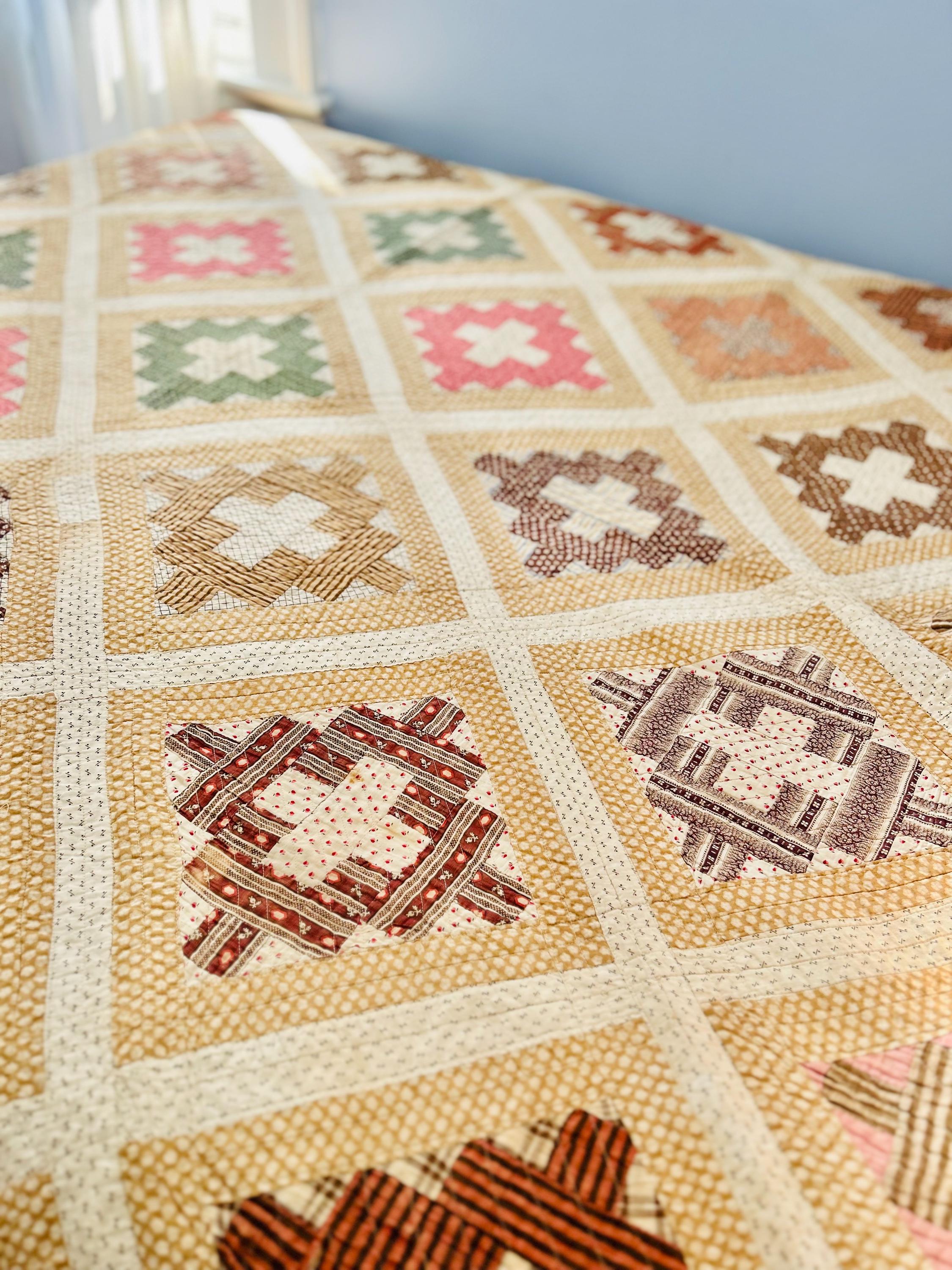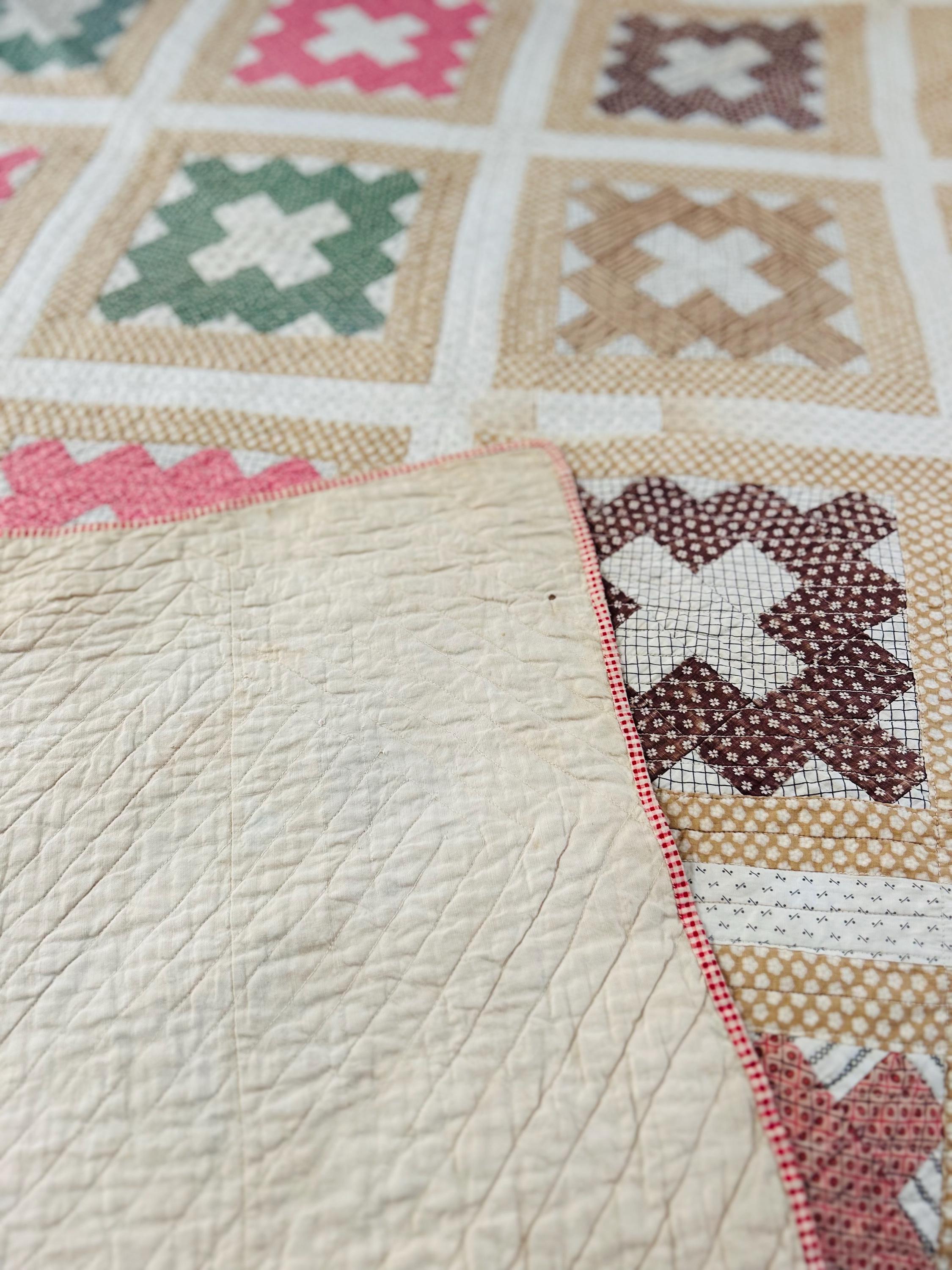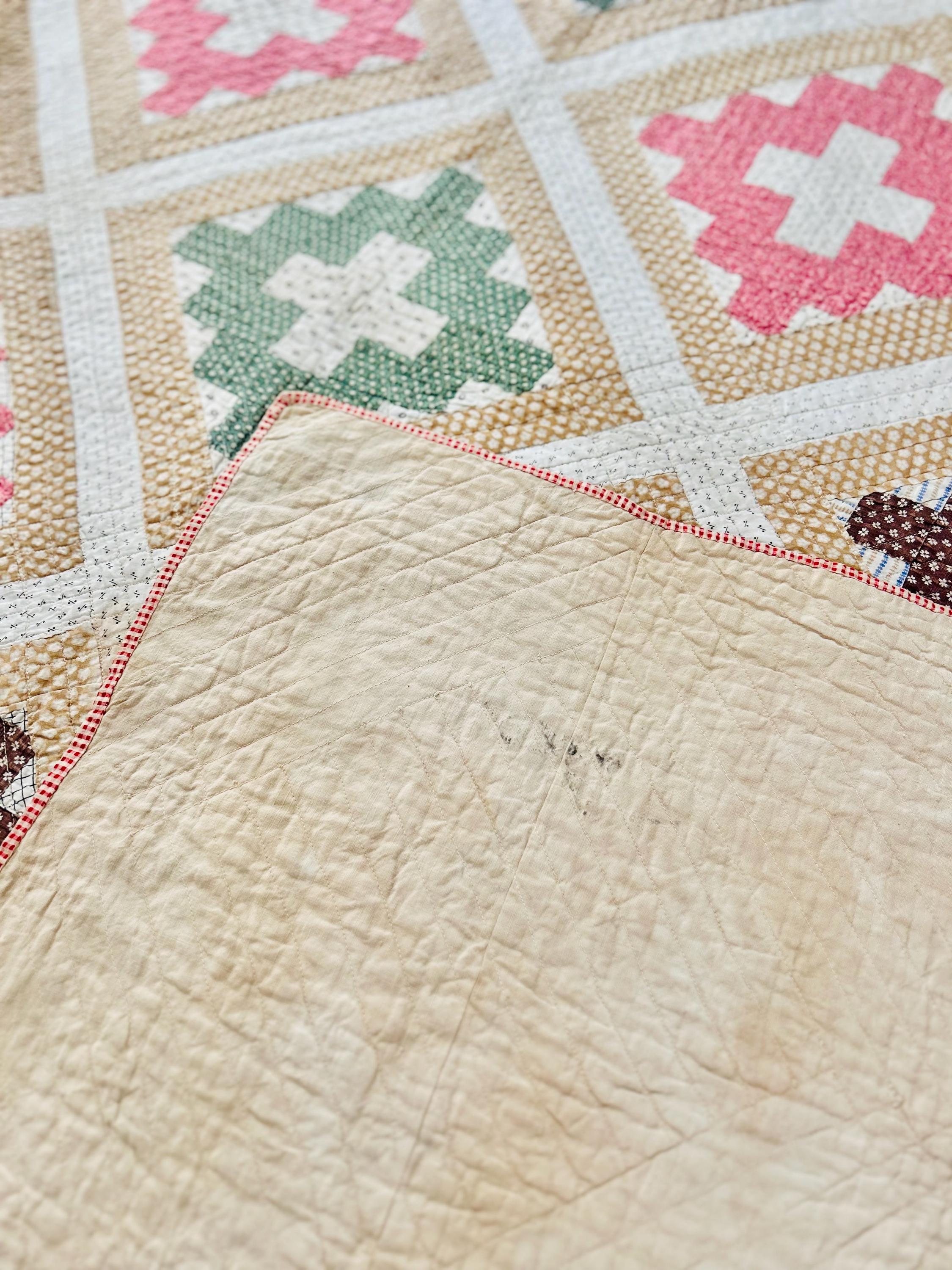 The quilt is in excellent antique condition with some fraying of the binding and overall fading of the fabrics. There are also several tiny dark spots (less than 1/8 inch) on the back that do not show or effect the front.