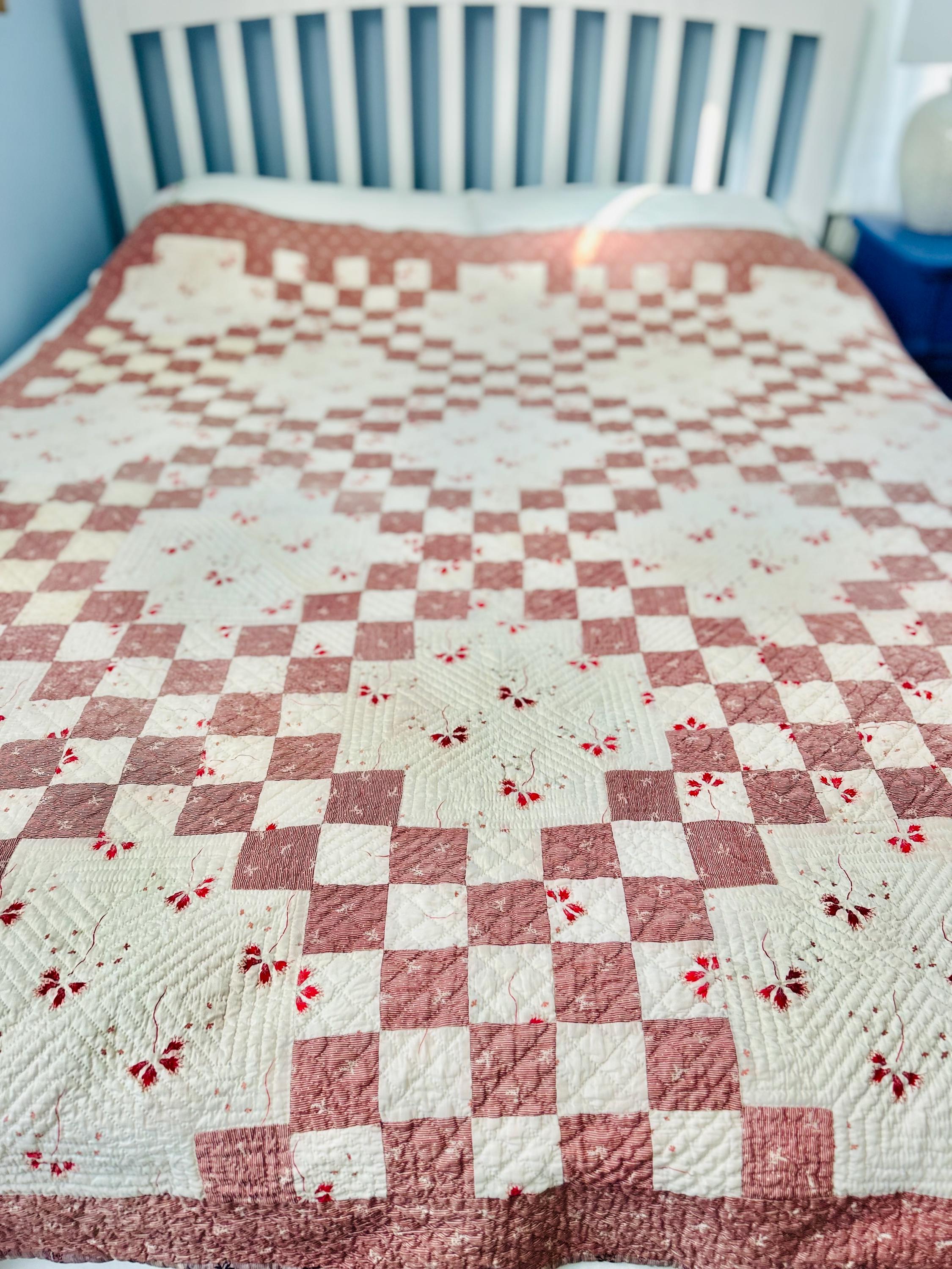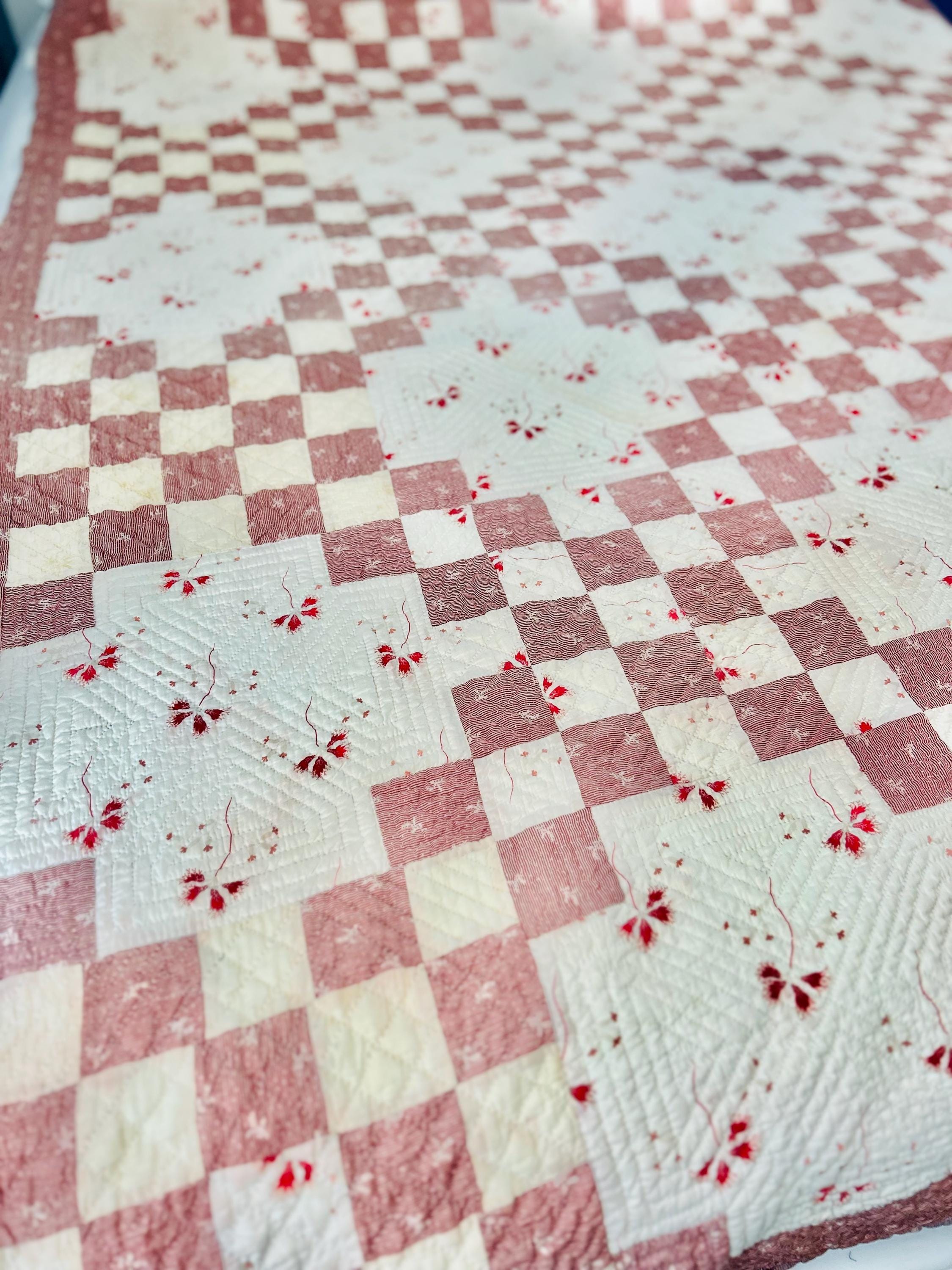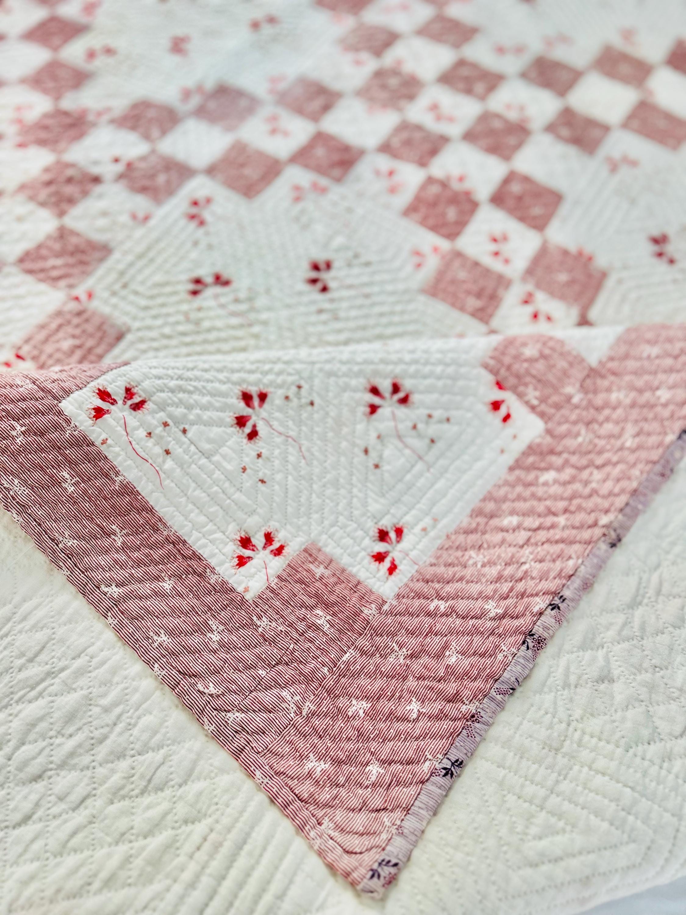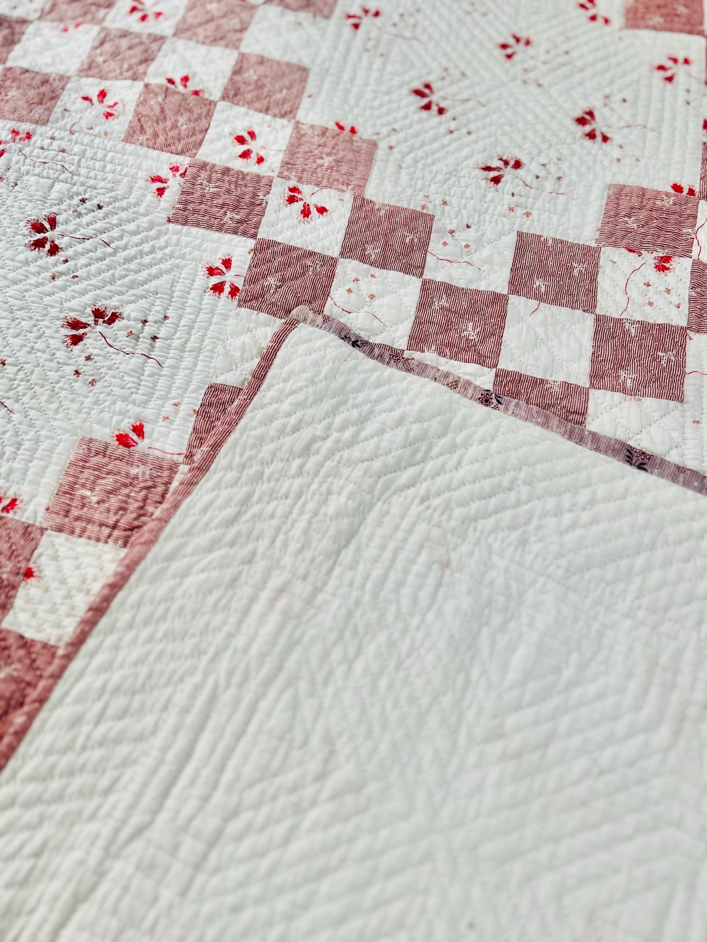 This lovely Double Irish Chain Quilt is circa 1870s-1890s and has been intricately and impressively hand-quilted in tiny diamonds, very narrow lines, double diagonals and concentric triangles. See photos.