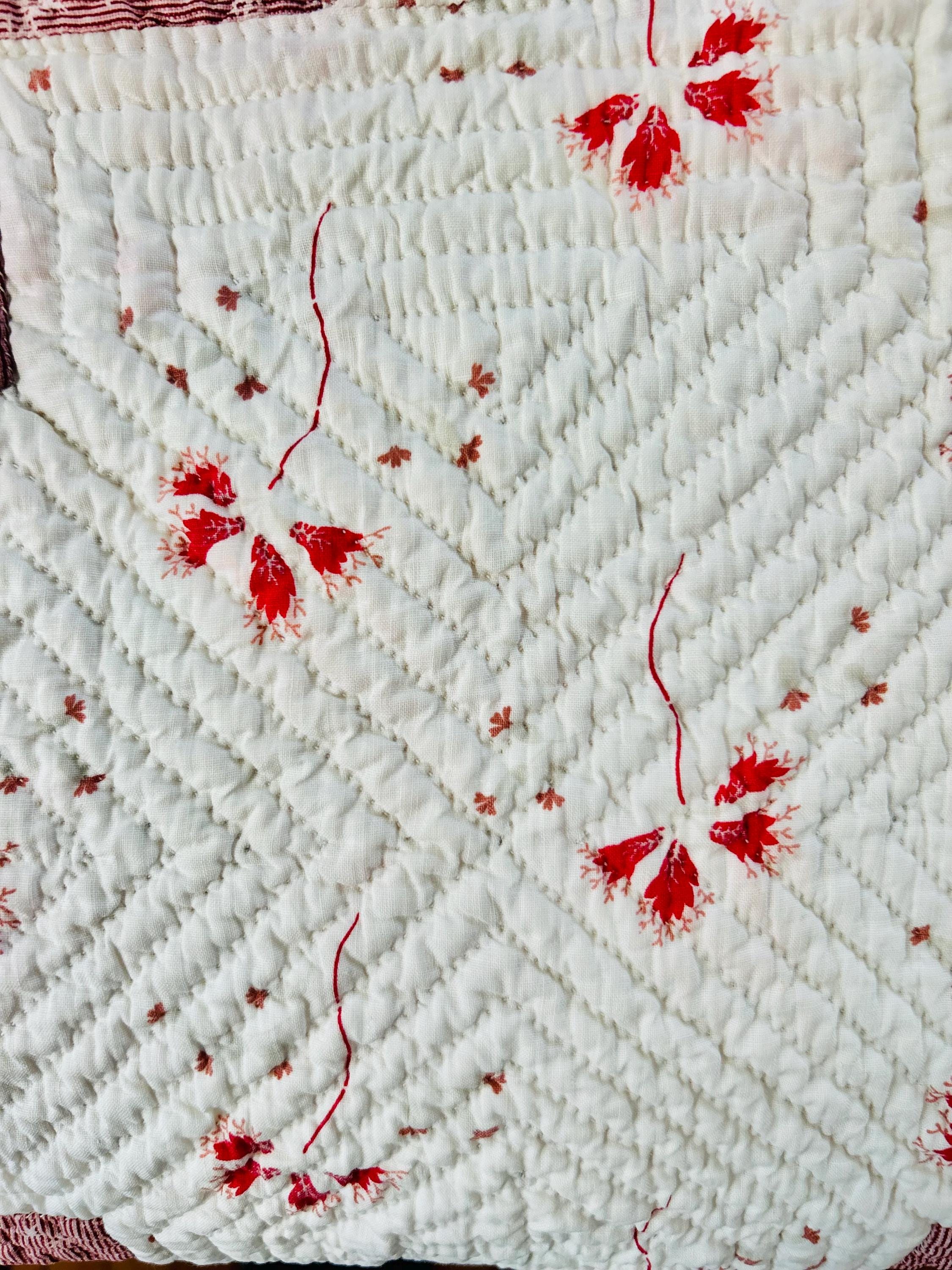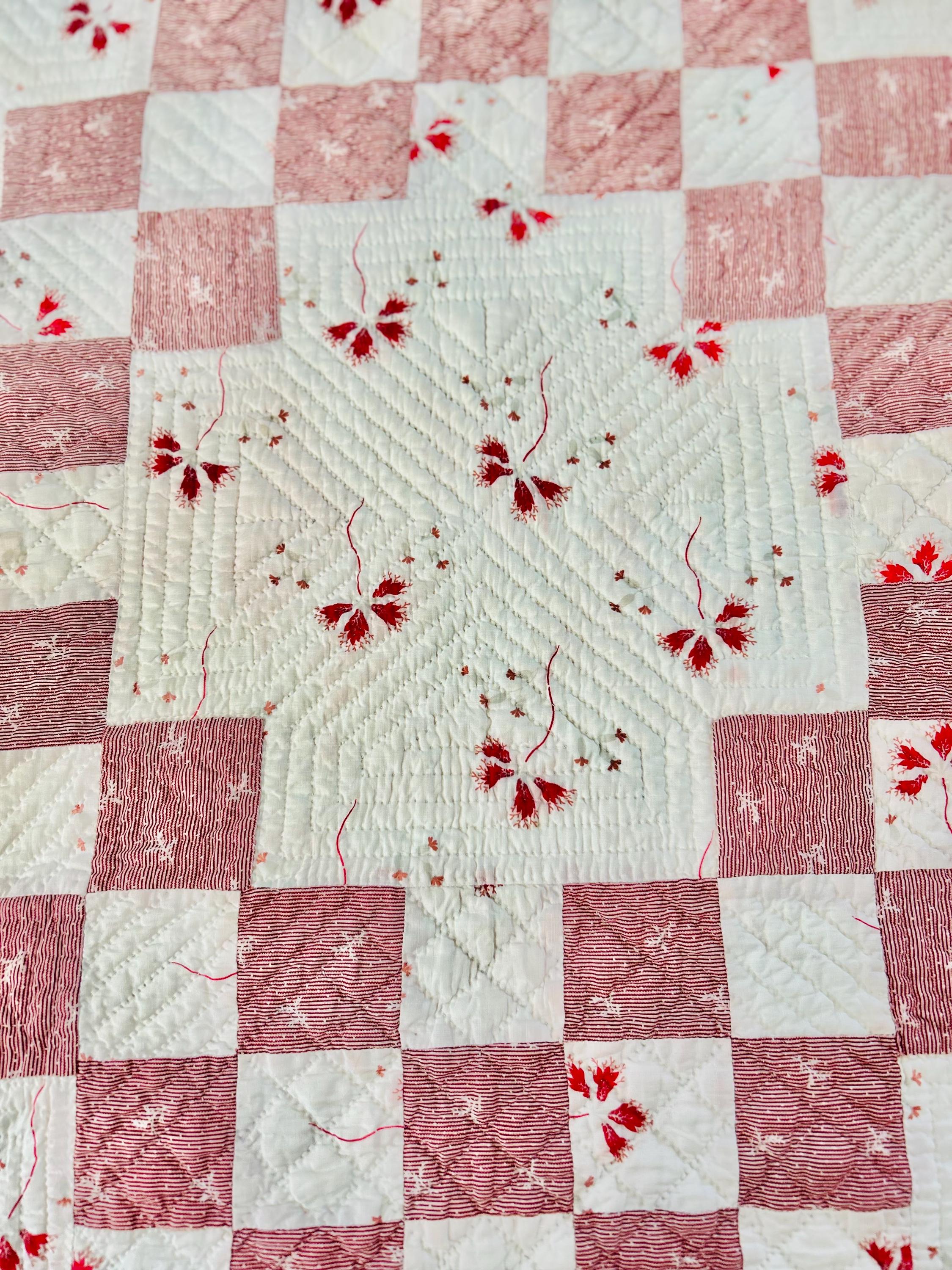 The quilt is in excellent condition with some old red color transfer from the color print.