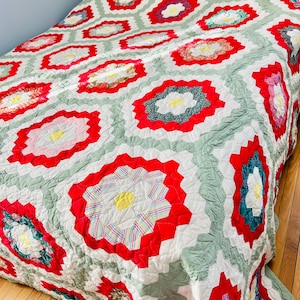 The quilt is in excellent condition with small tan marks on one white block (see photos).