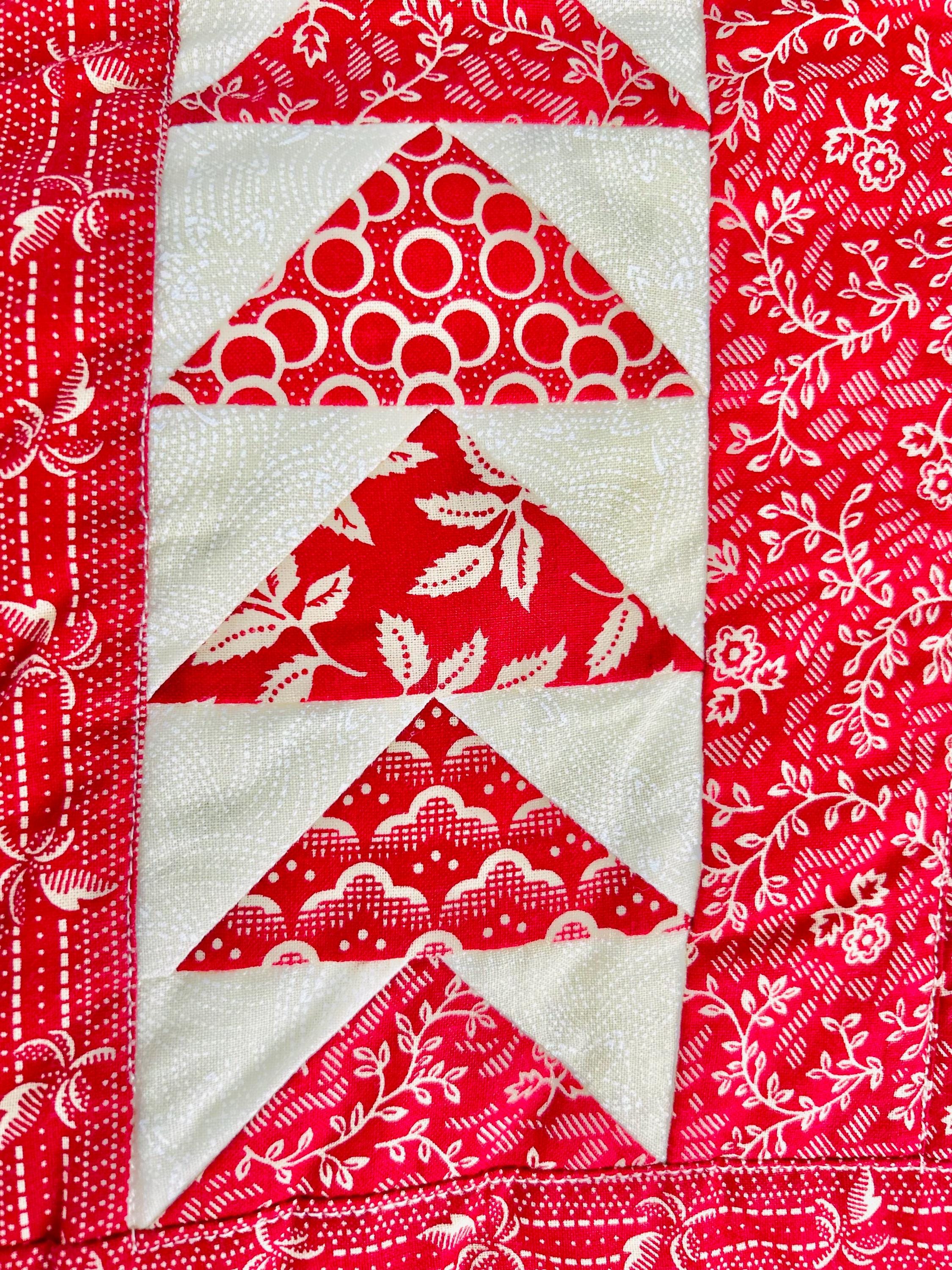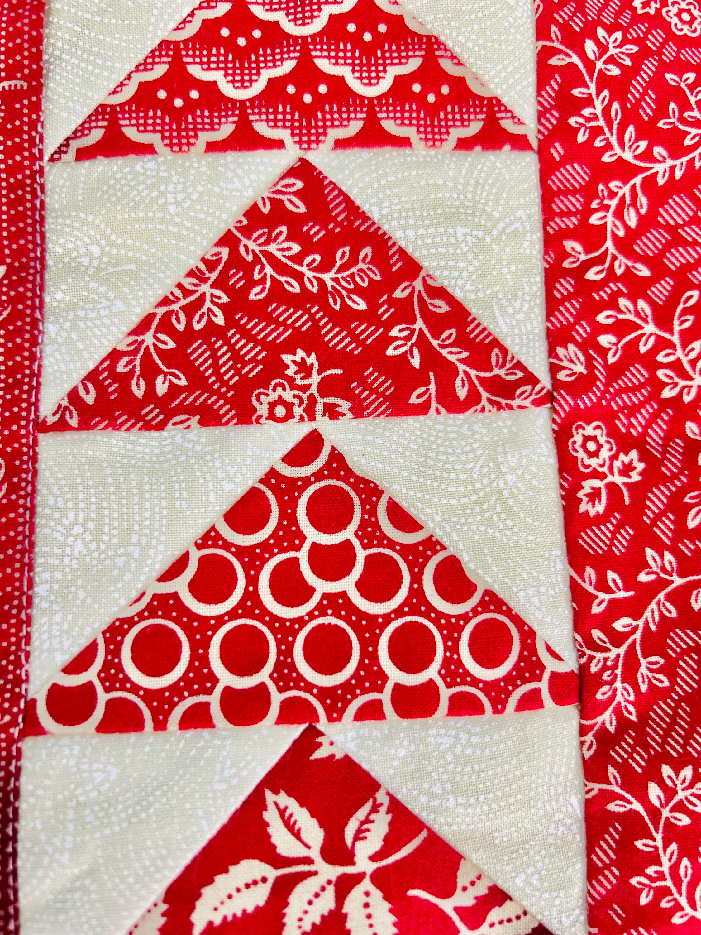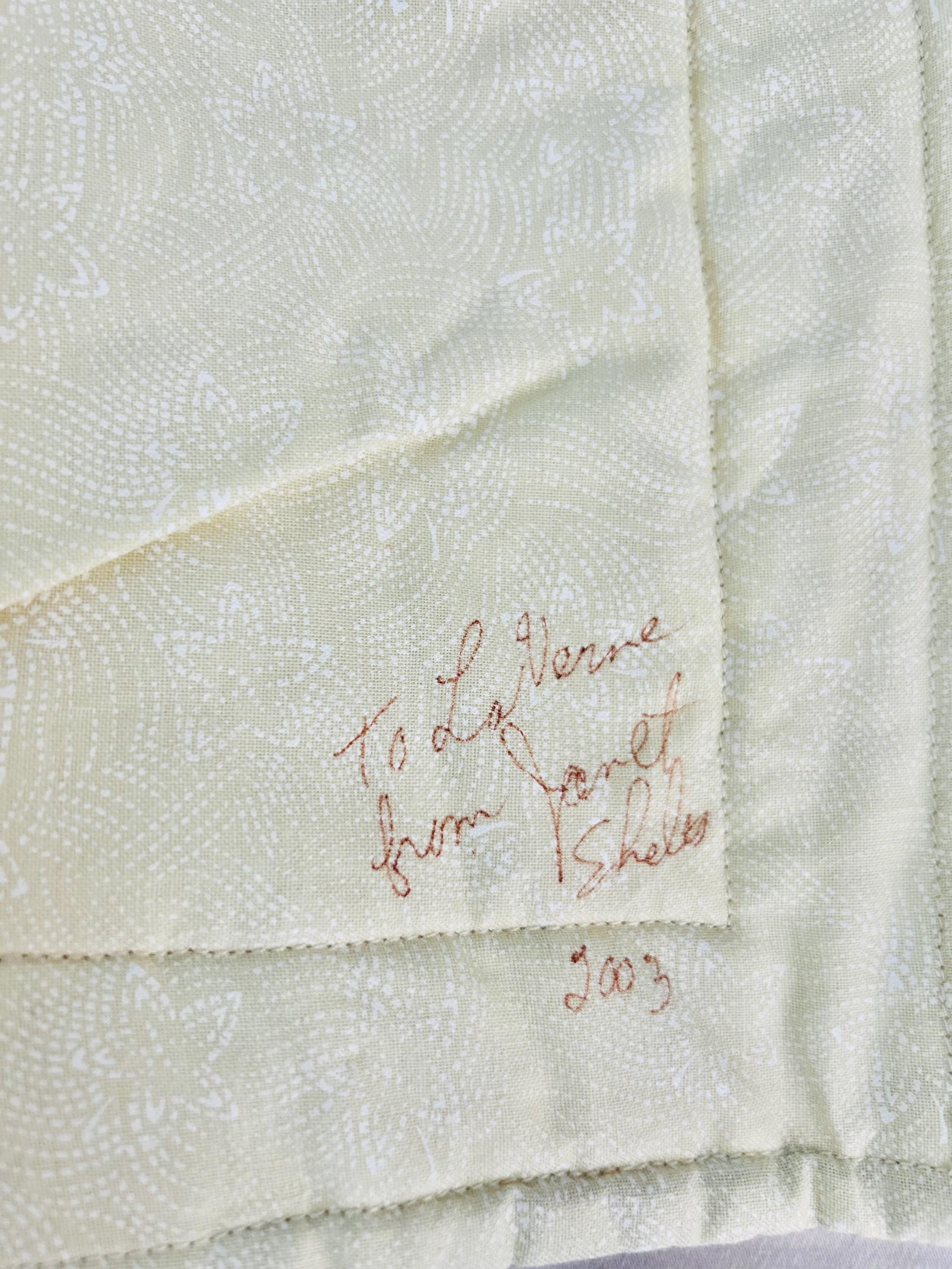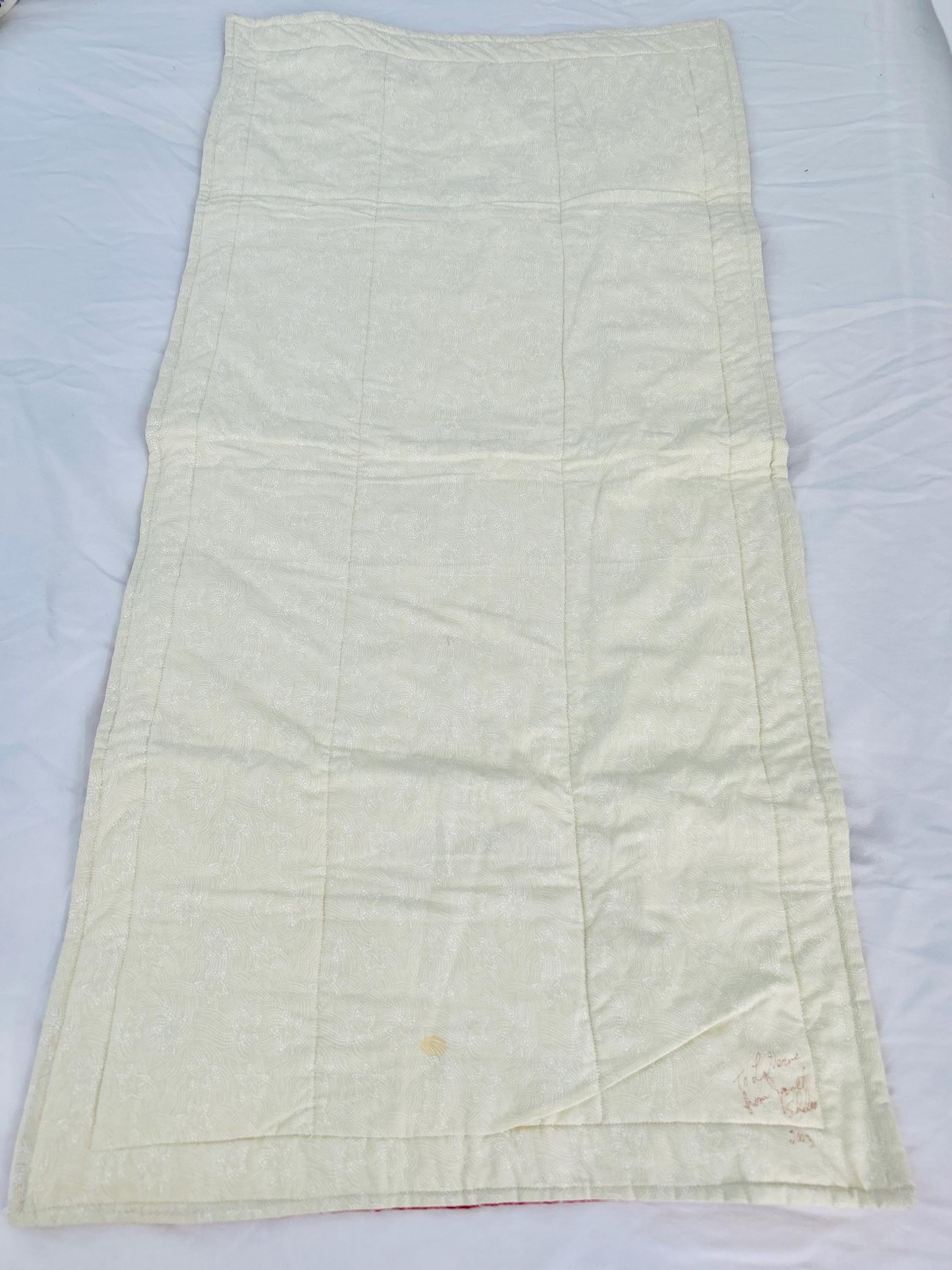 This is a Vintage Star Table Runner or Table Mat that has been machine quilted and pieced from very high-quality cottons. It is signed and dated 2003. The back is the same off-white star pattern used on the front and the batting is lightweight.