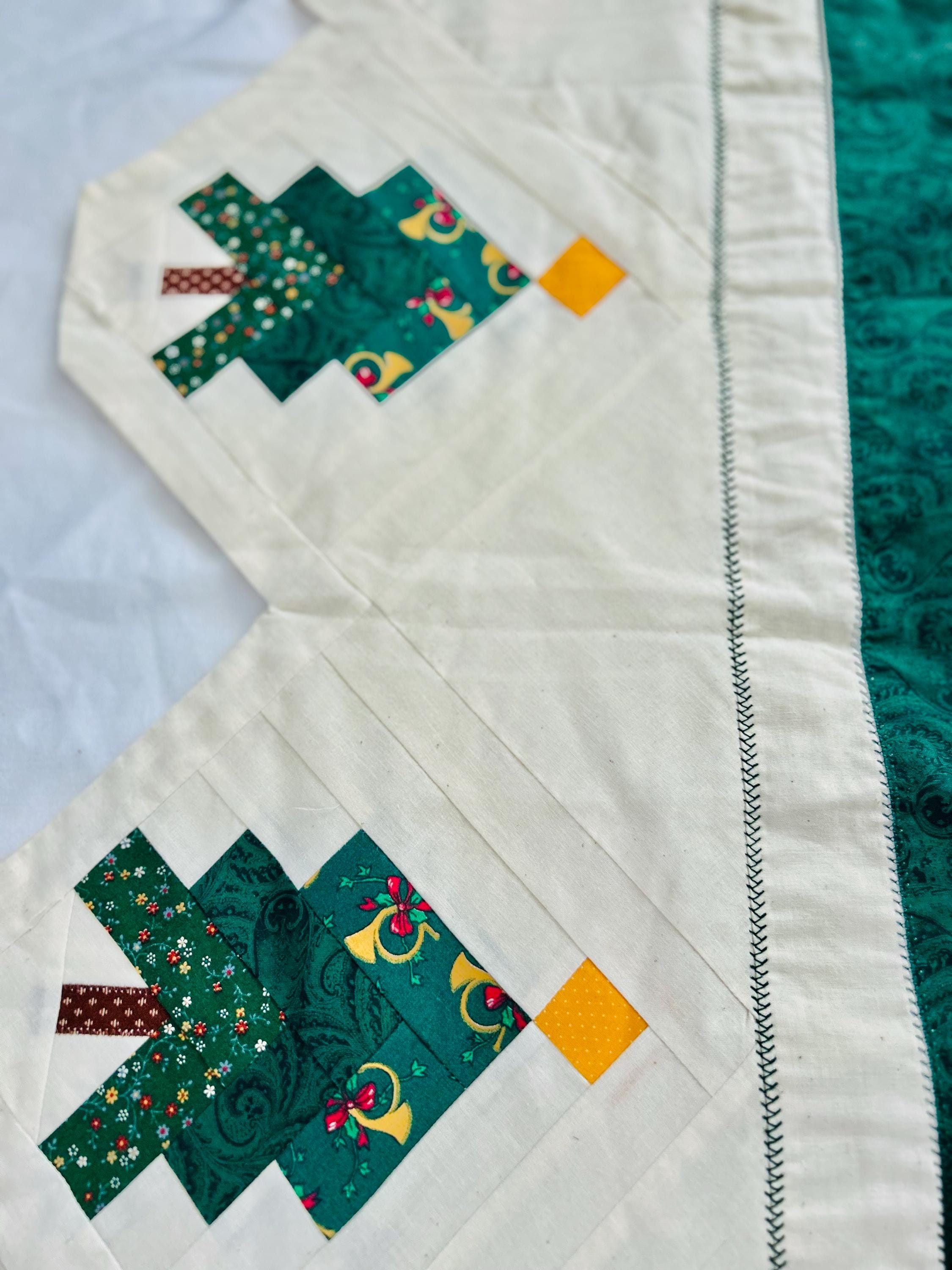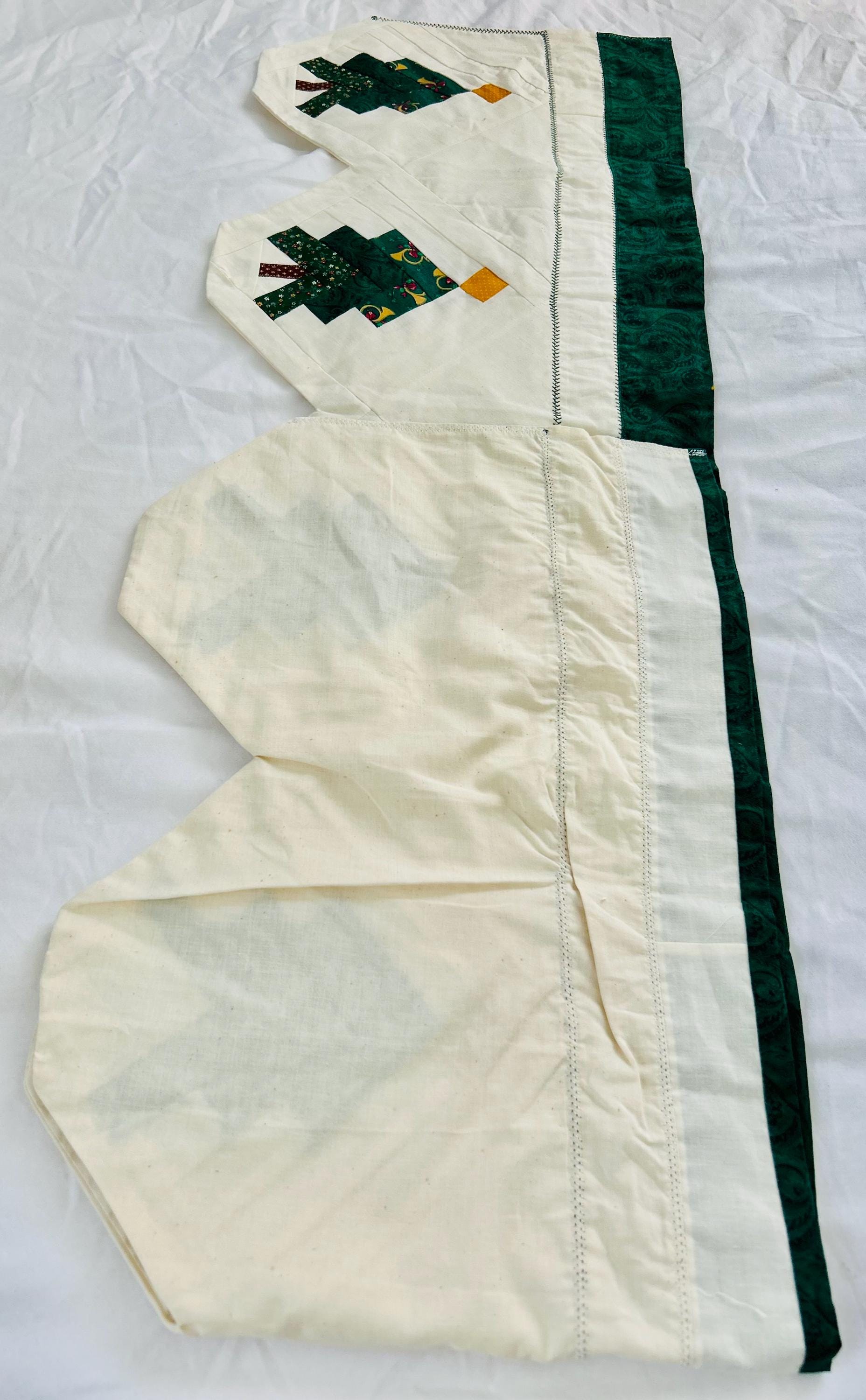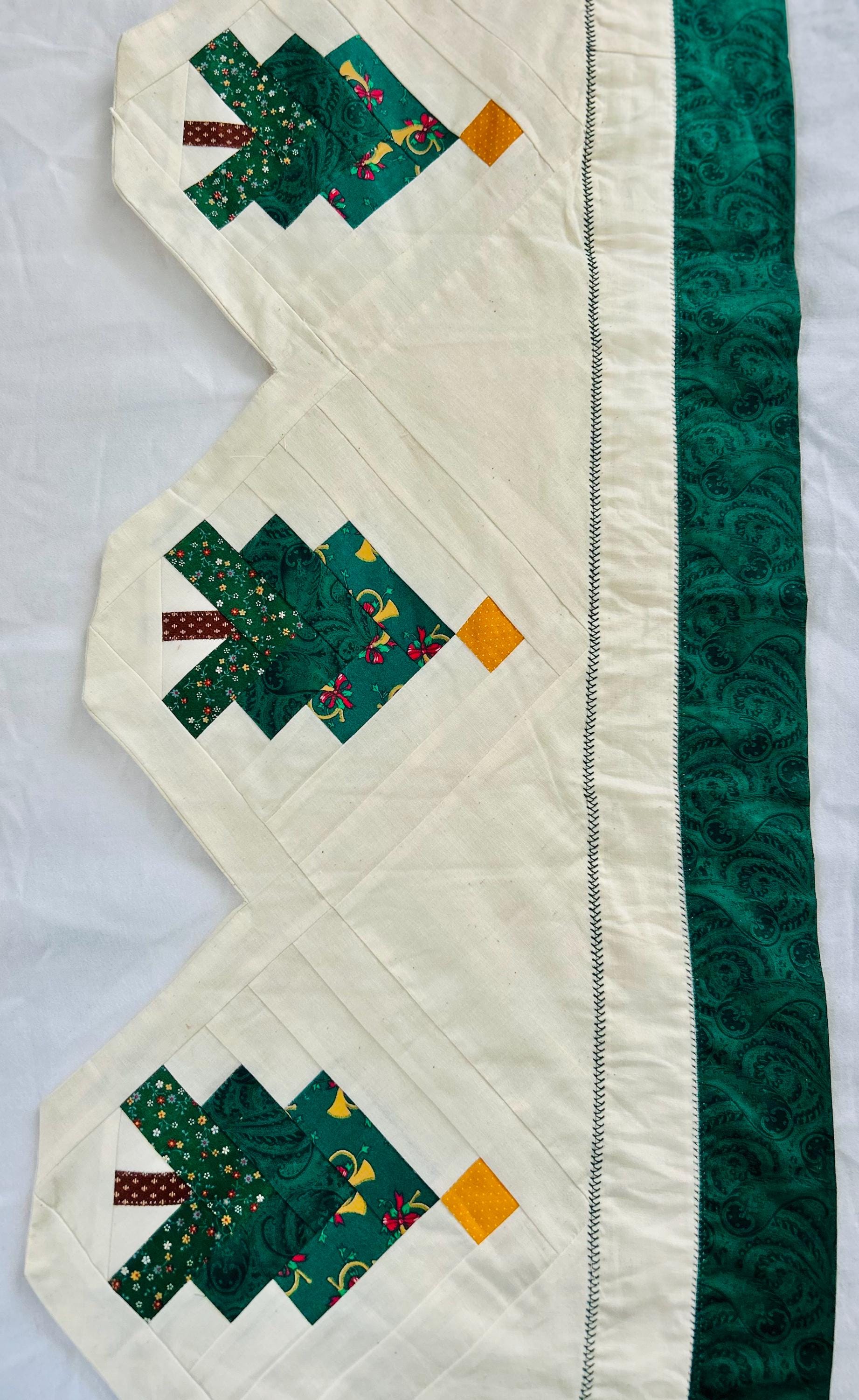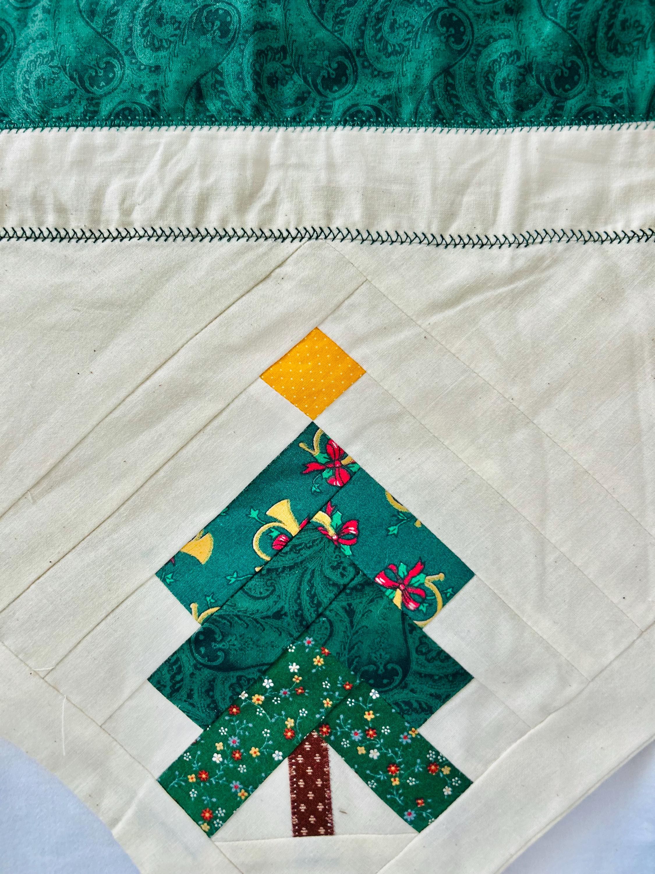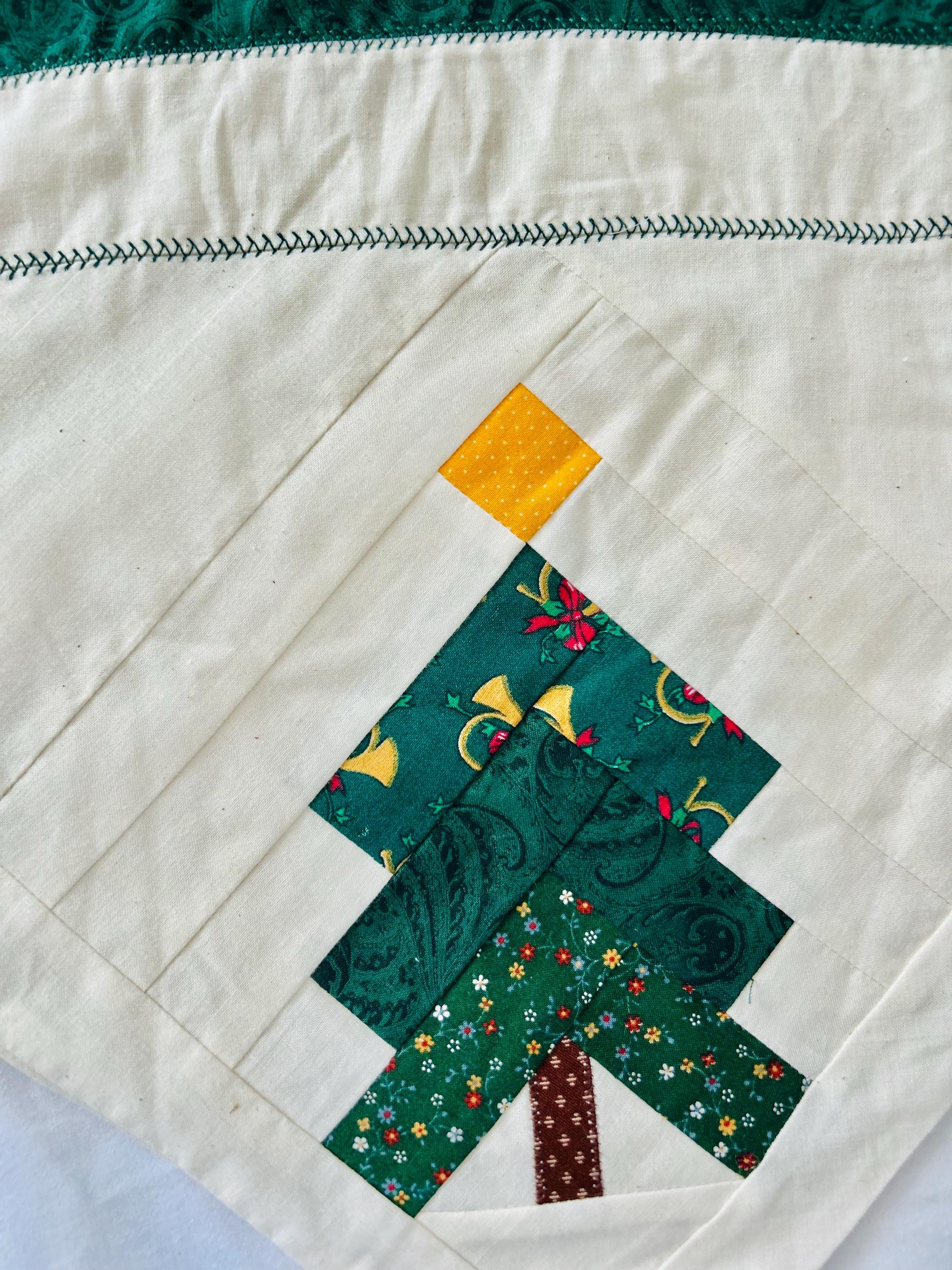 Vintage Christmas Table Runner or Table mat or Wall Hanger or Display Quilt. It has been machine pieced and quilted with a sewing machine. The back is also a beautiful Poinsettia fabric that matches the front border. The batting is lightweight.