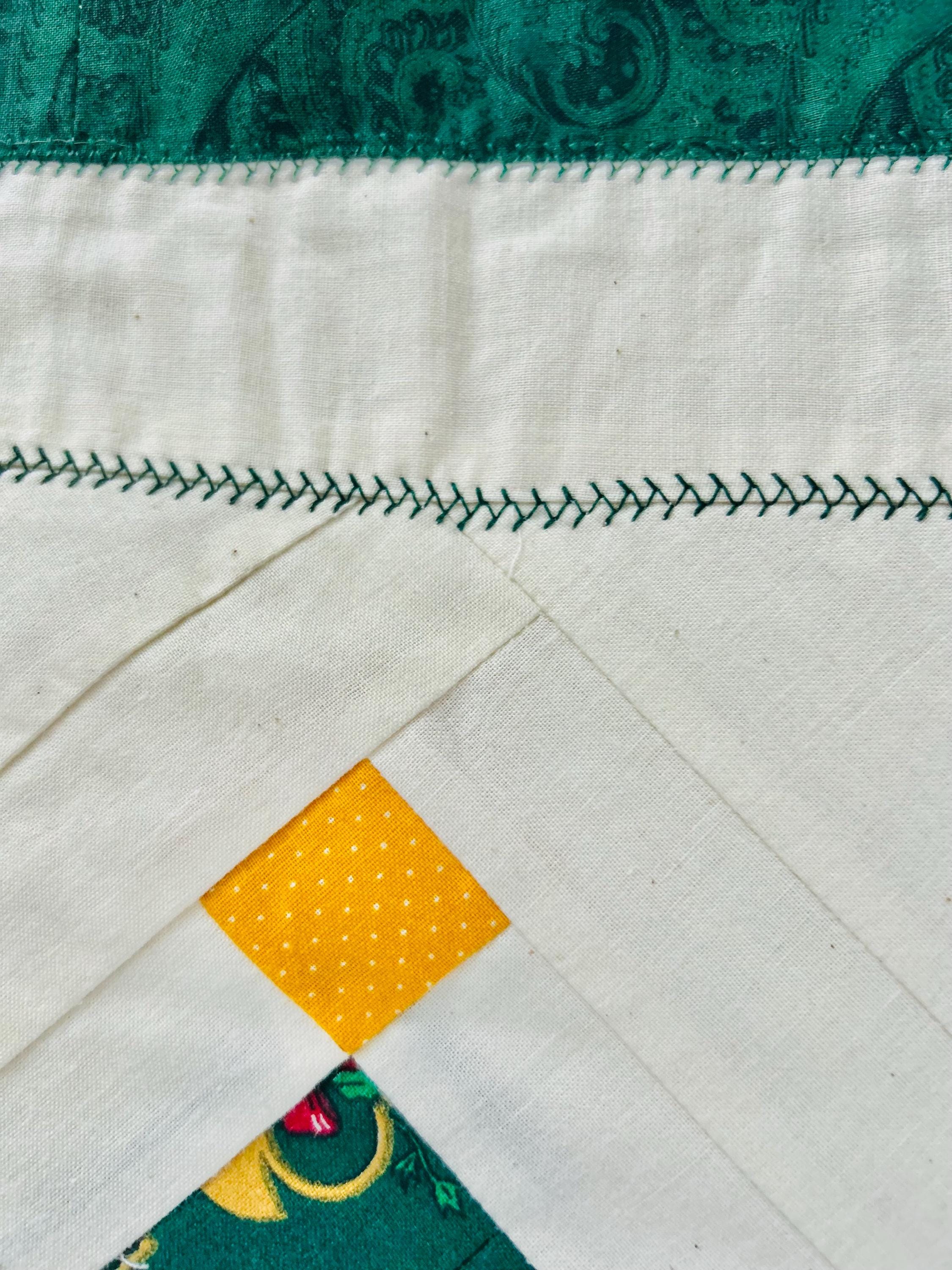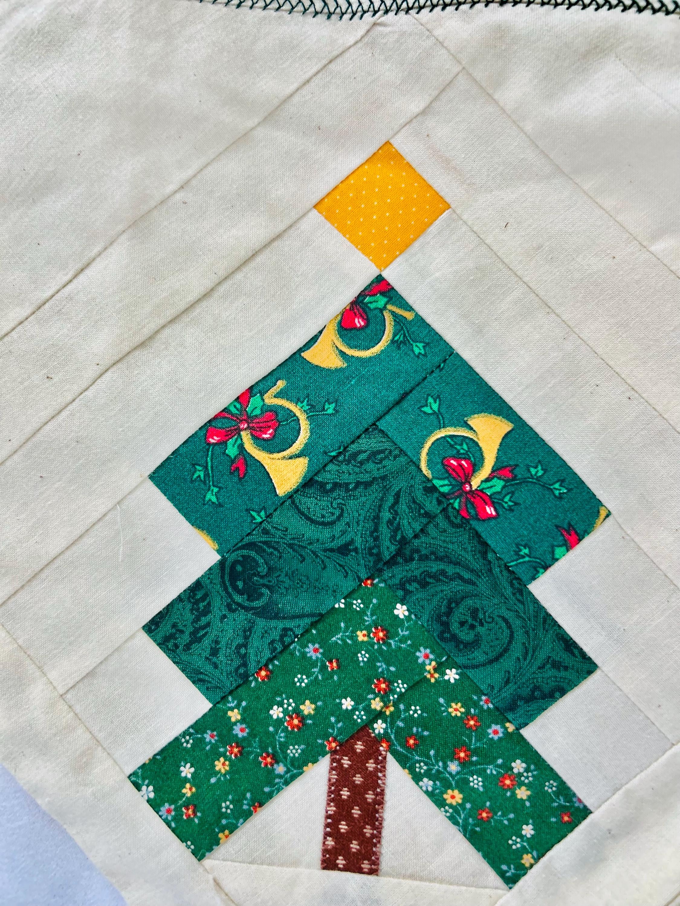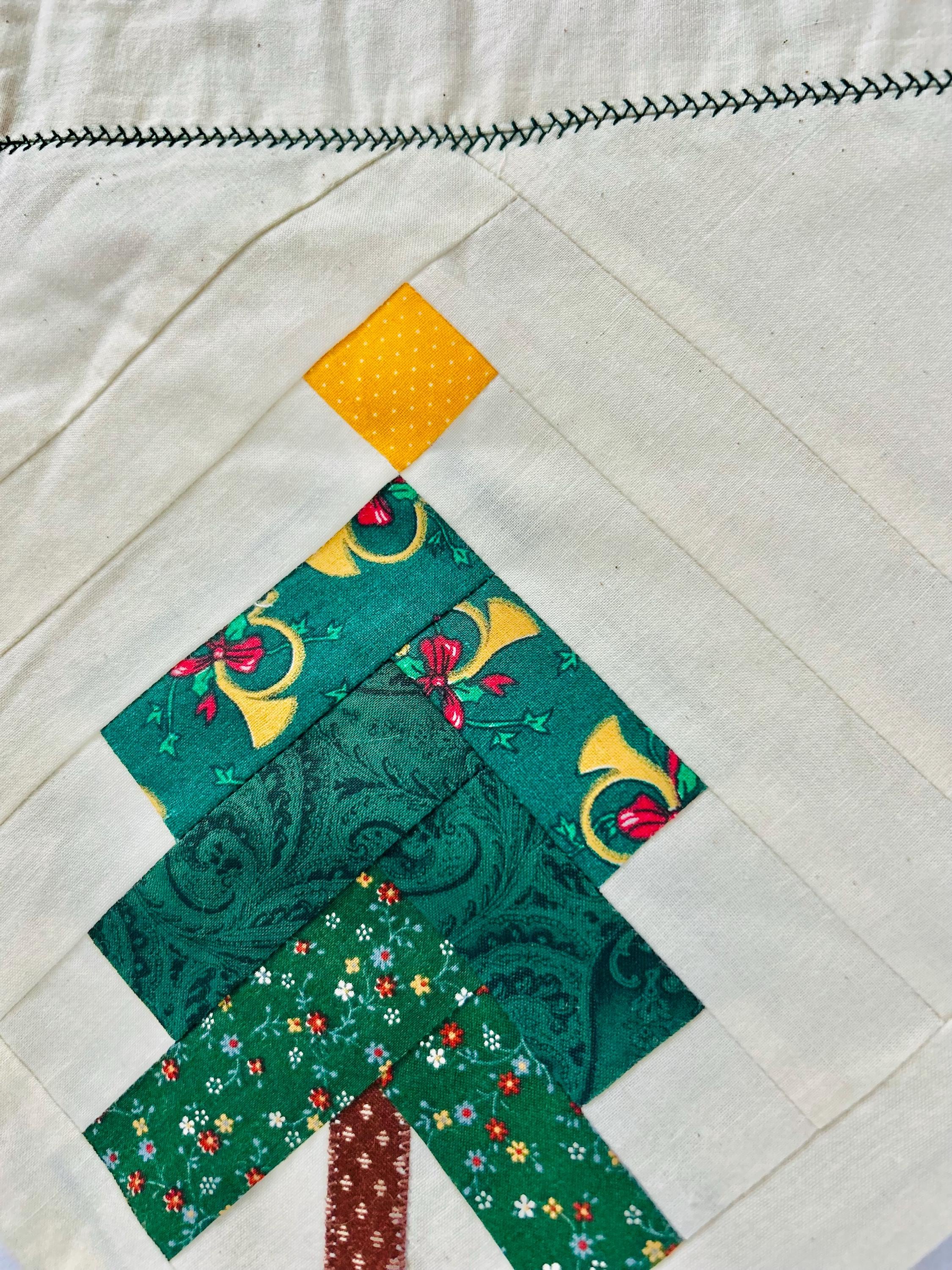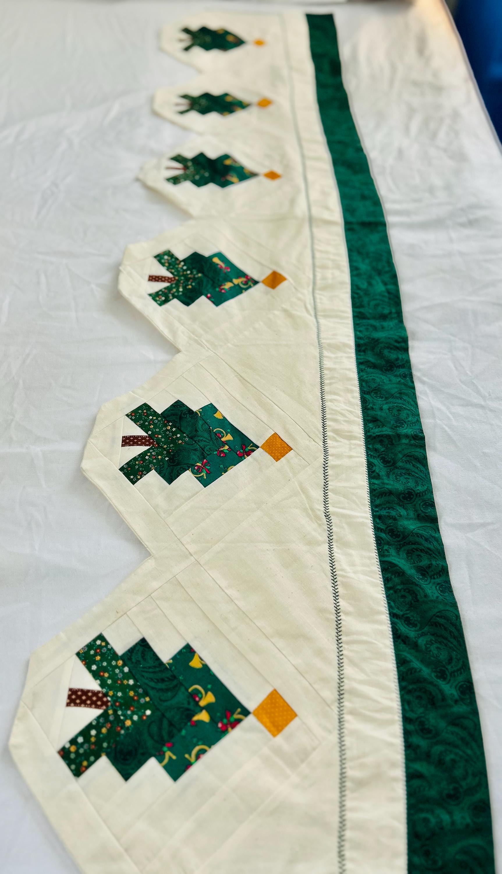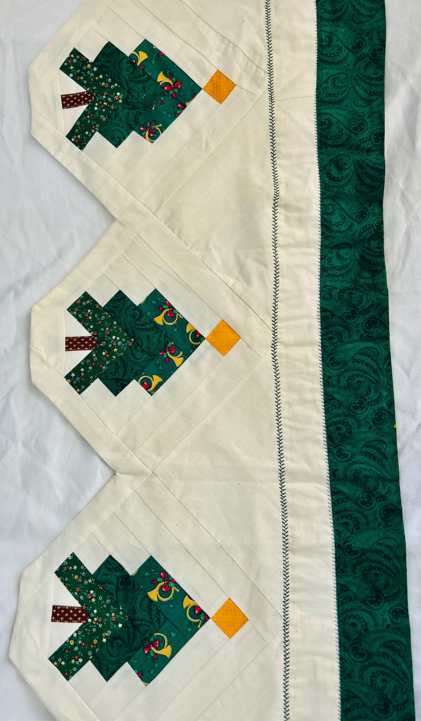 Vintage Christmas Table Runner or Table mat or Wall Hanger or Display Quilt. It has been machine pieced and quilted with a sewing machine. The back is also a beautiful Poinsettia fabric that matches the front border. The batting is lightweight.