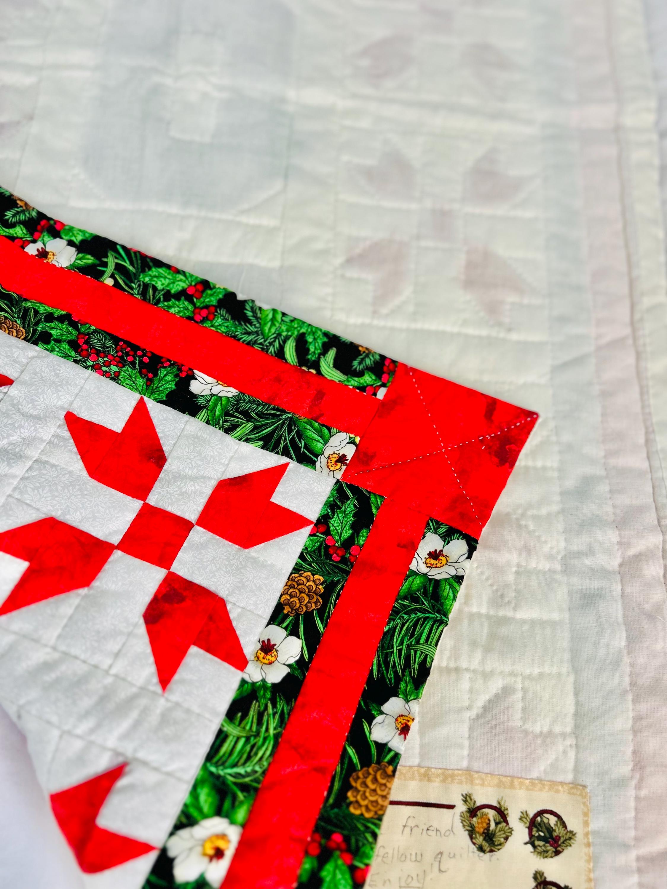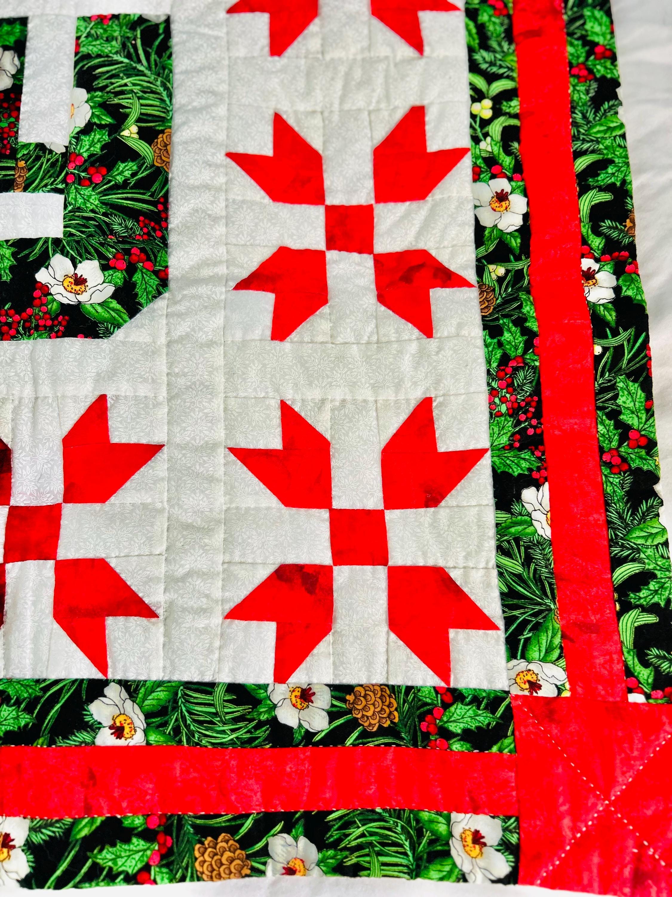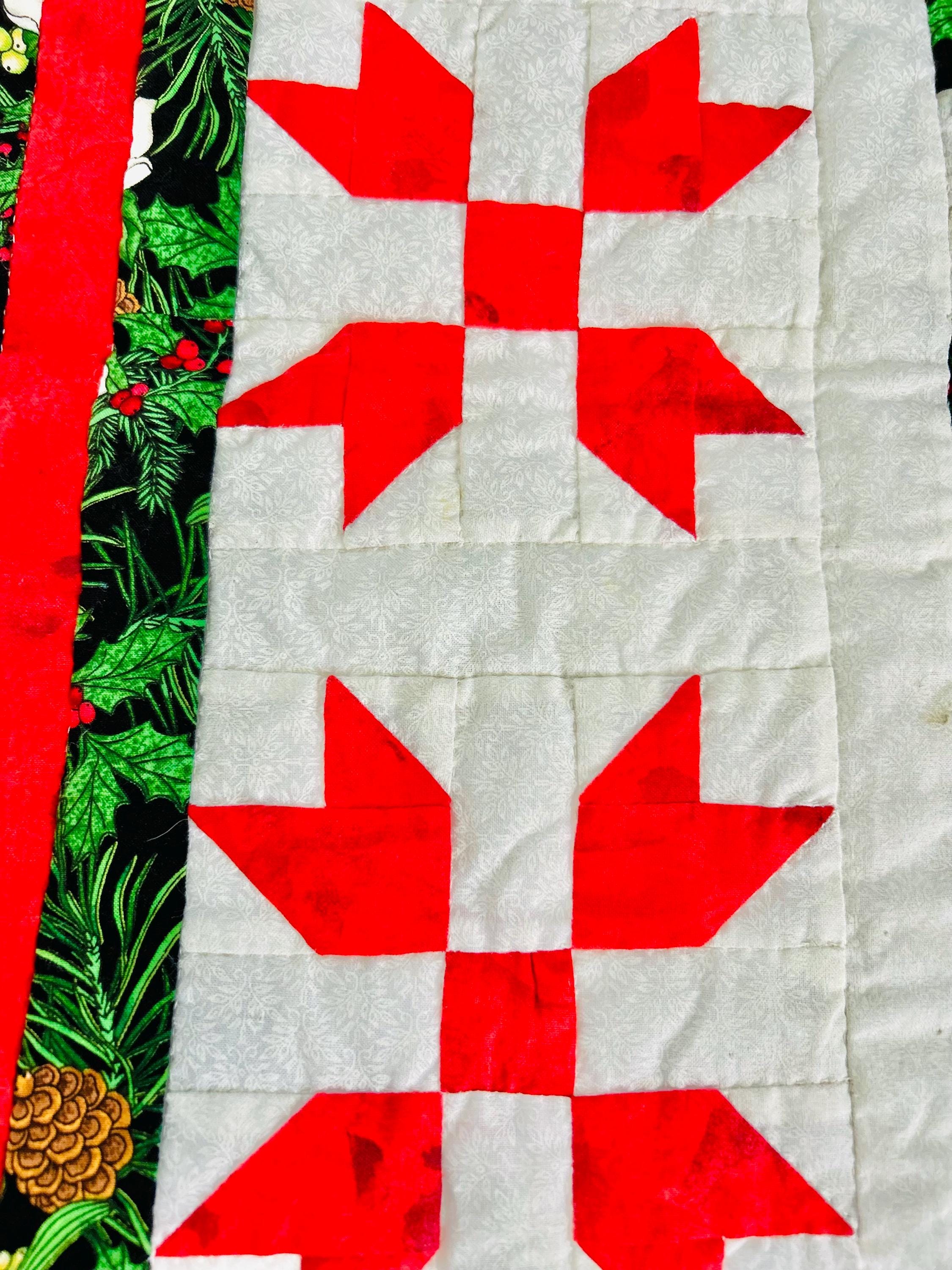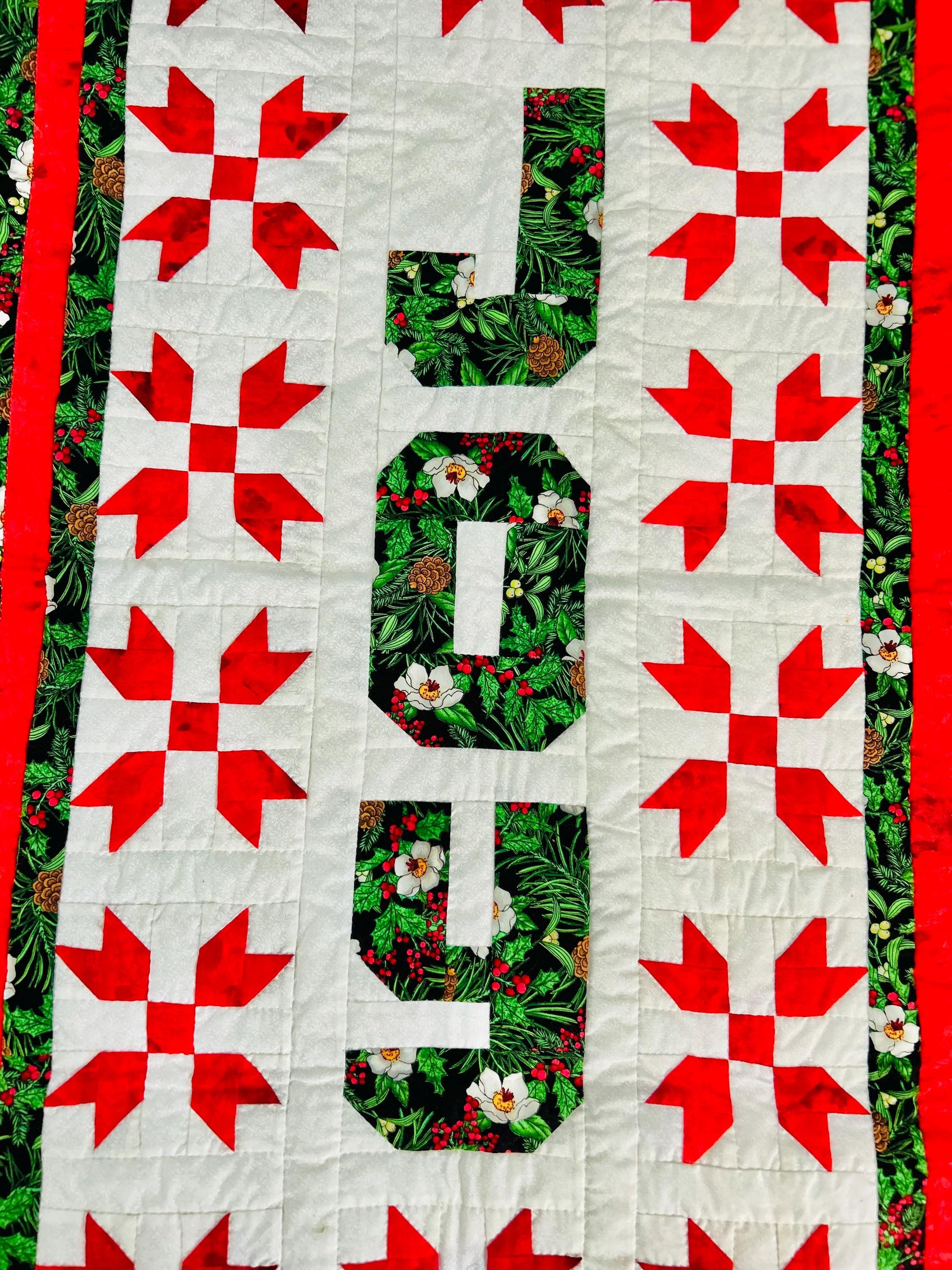 Vintage Holiday "JOY" Table Runner or accent piece made from high quality cottons with display sleeve sewn into the back. It has been machine pieced and quilted. The batting is lightweight.