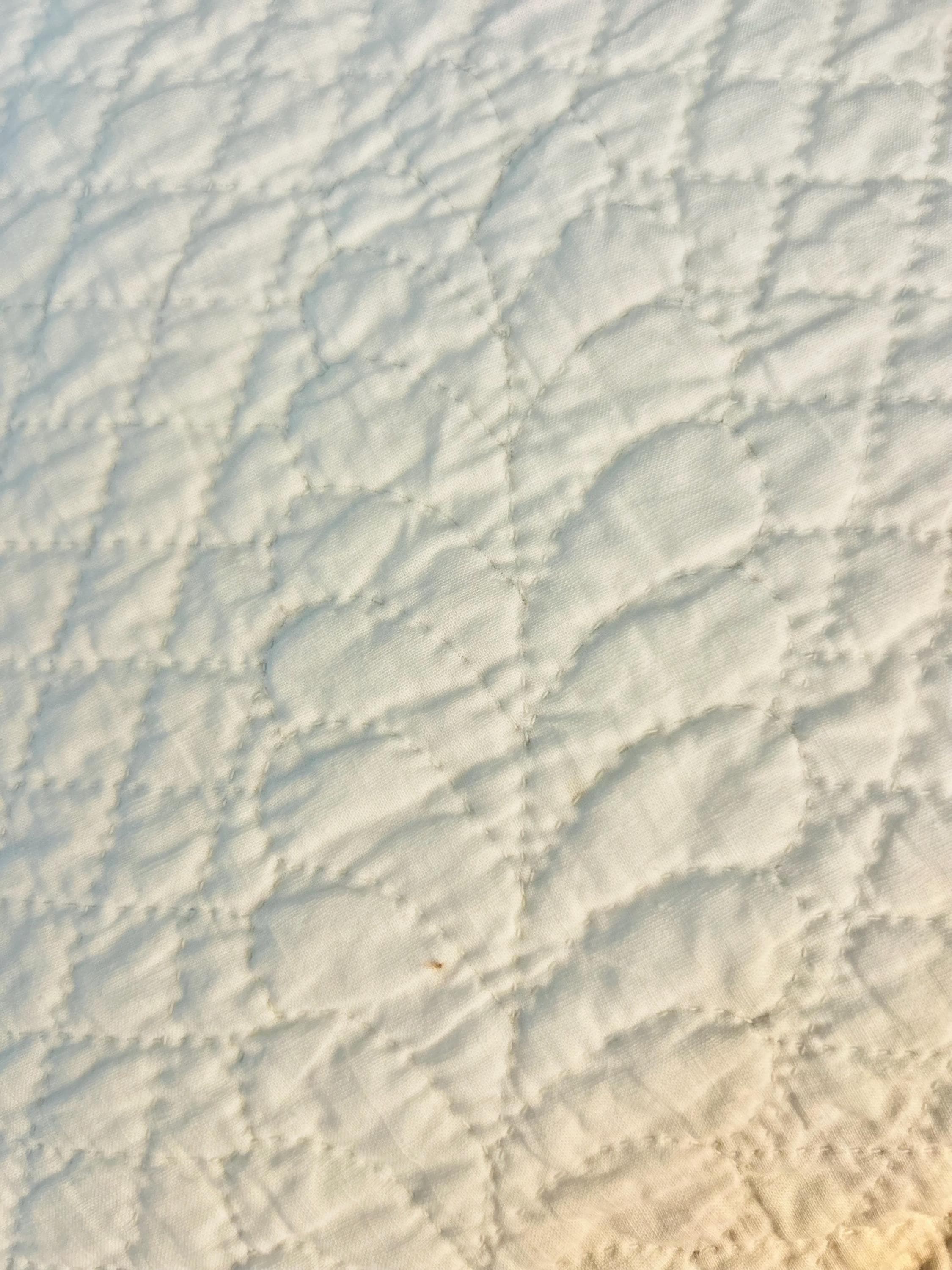 This lovely quilt is in excellent, unused condition, with no condition issues noted and the original pencil marks for the quilting still visible.