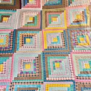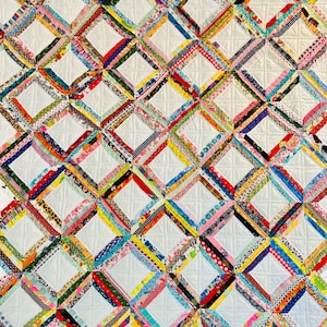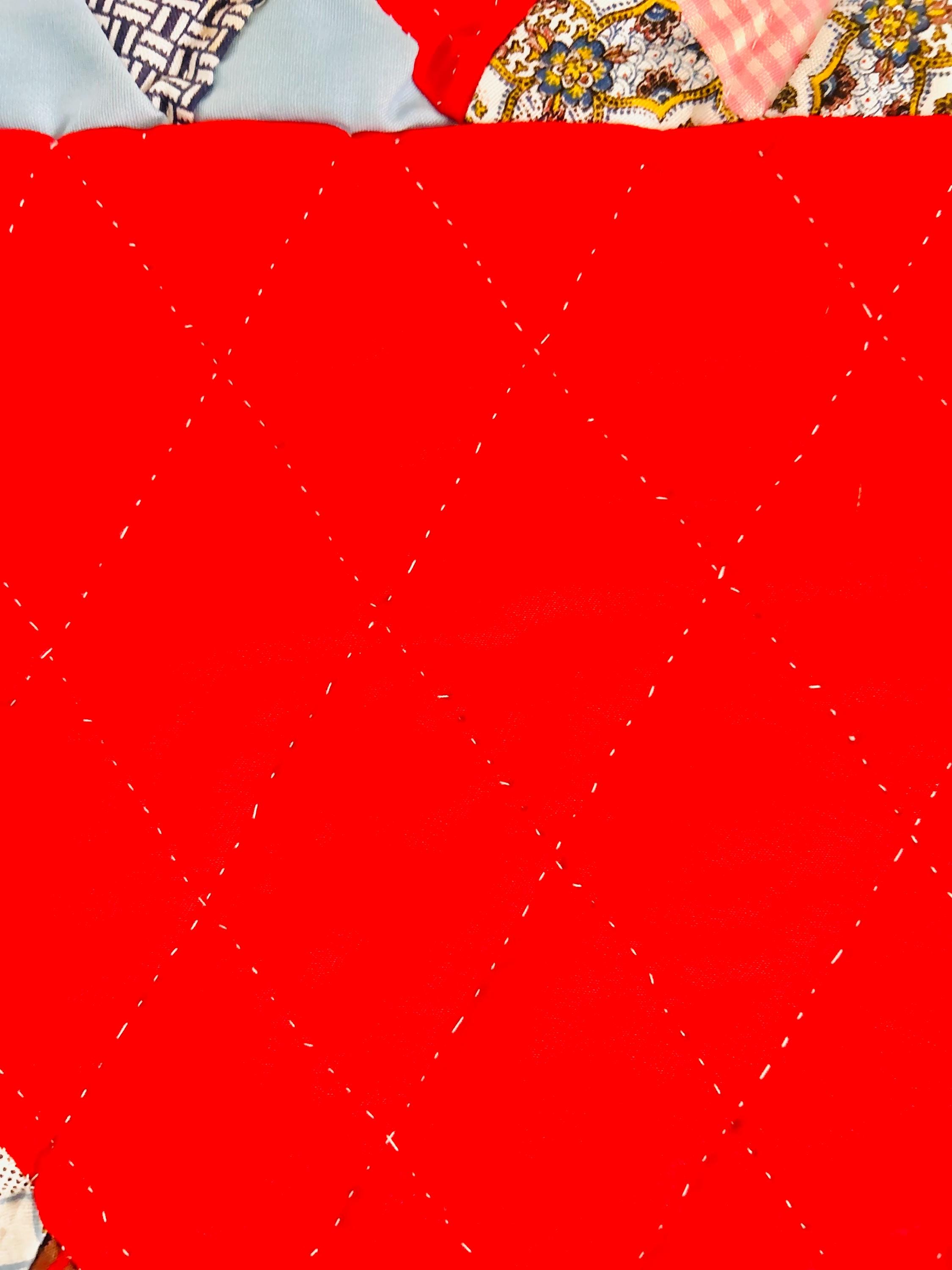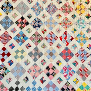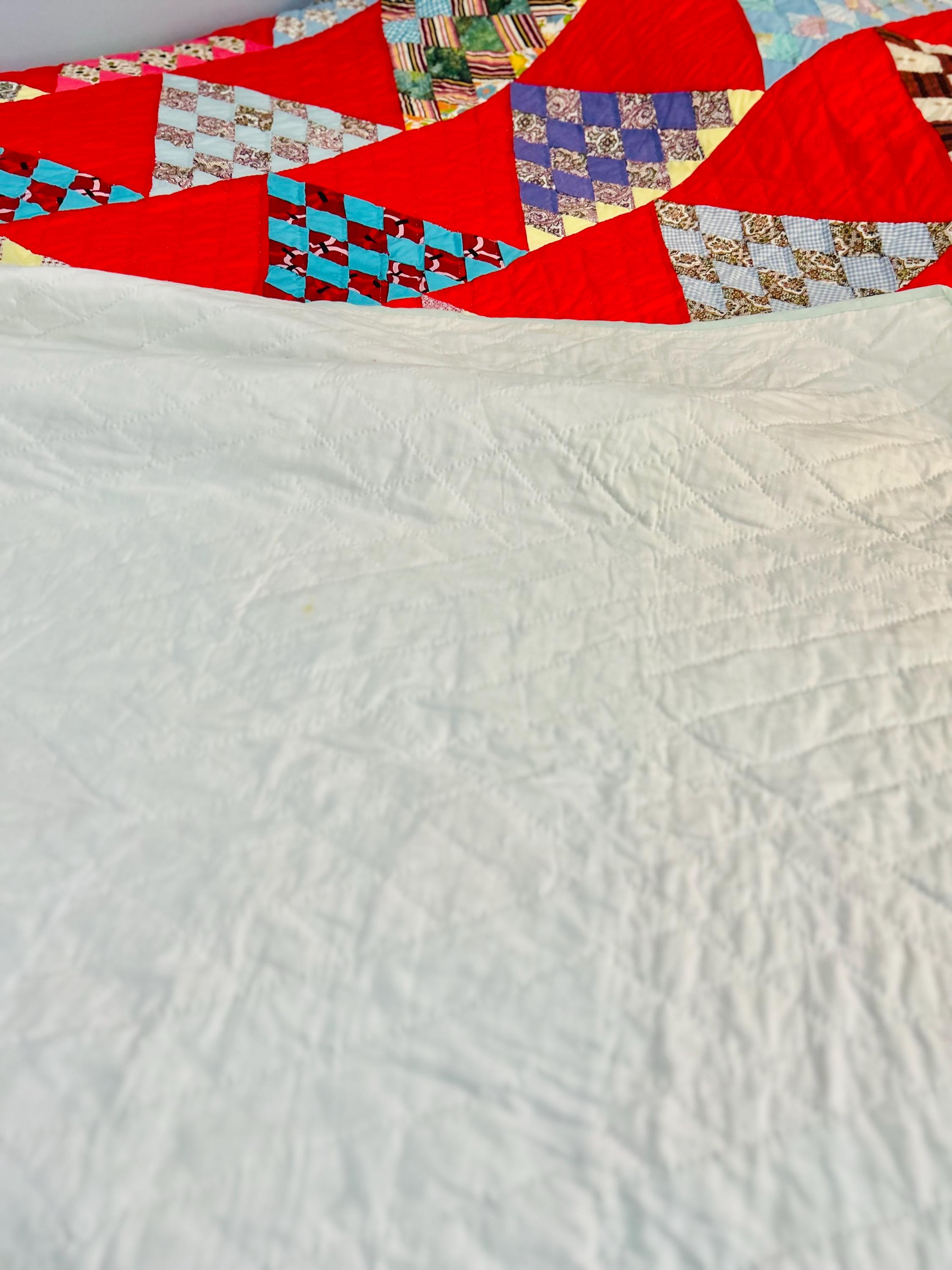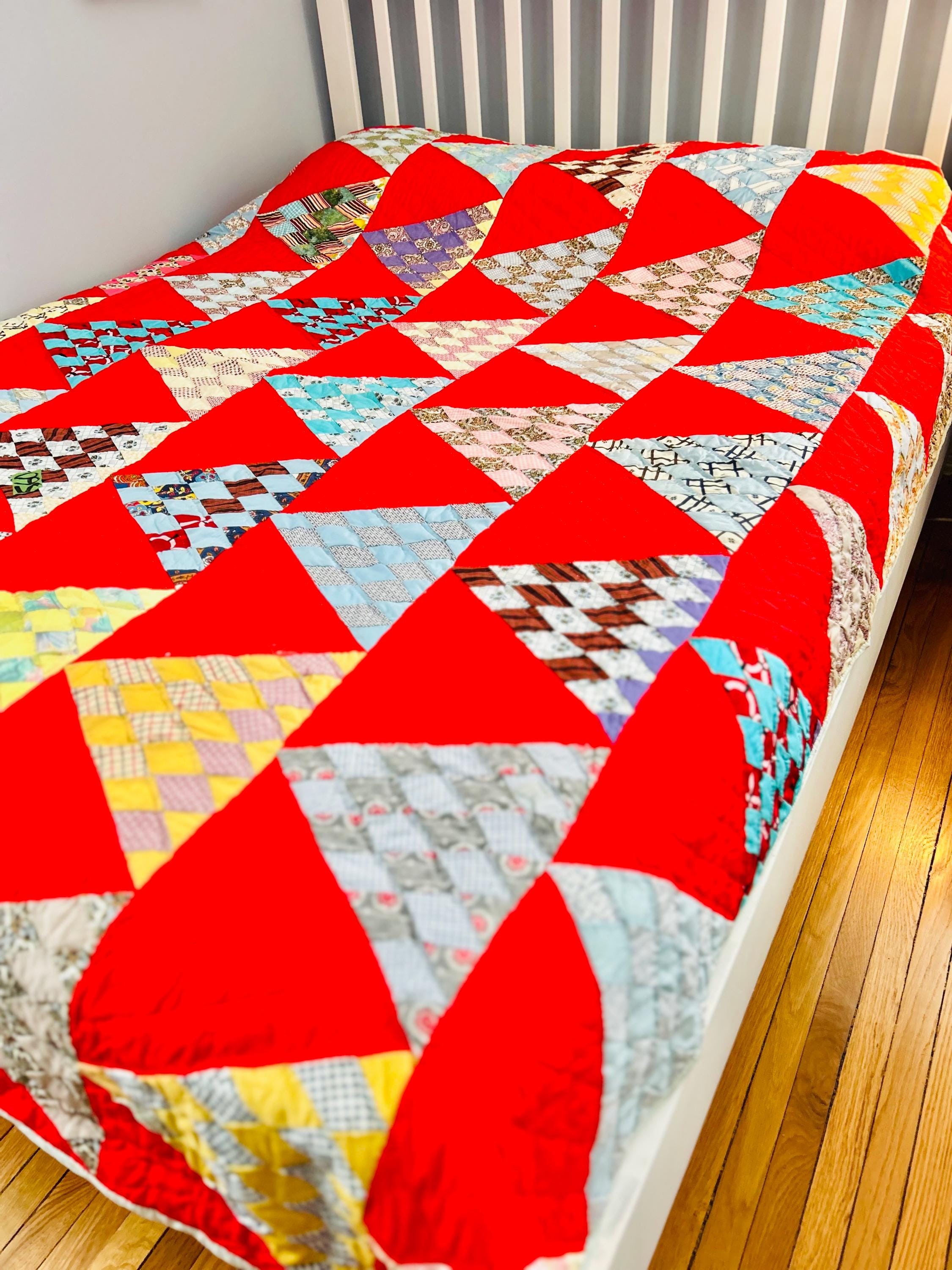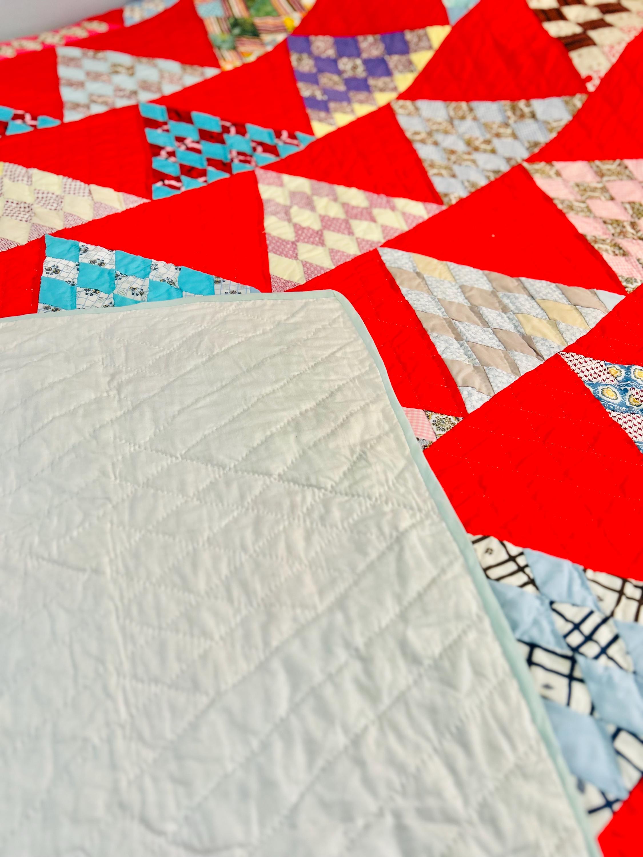 This Thousand Pyramids Quilt is circa 1940s and has been beautifully hand-pieced and entirely hand-quilted. The quilting, like the piecework, is in diamonds.