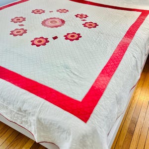 This lovely quilt is clean and soft and measures 74 inches by 87 inches. From a smoke-free, pet-free home. Shown on a queen bed.