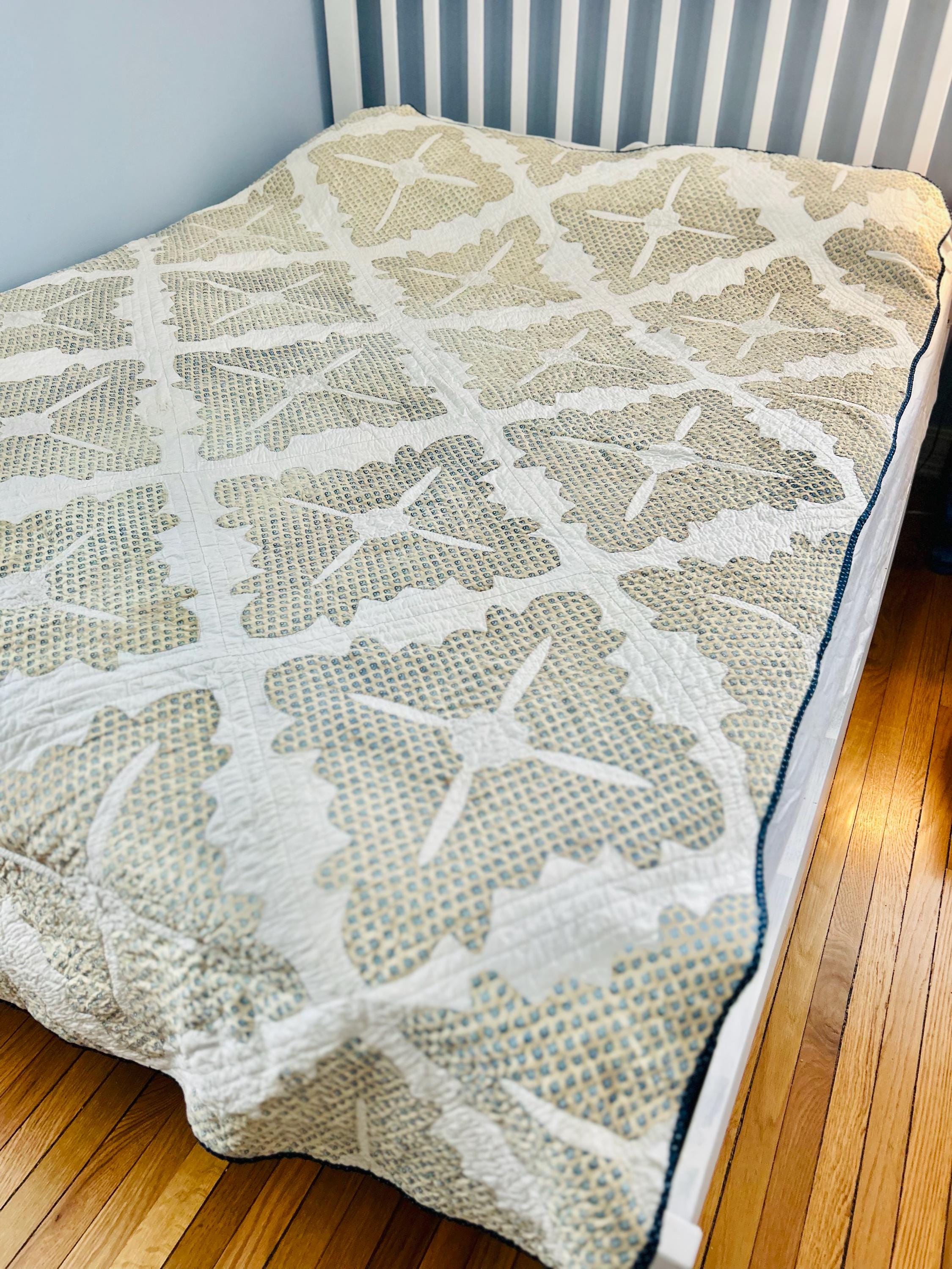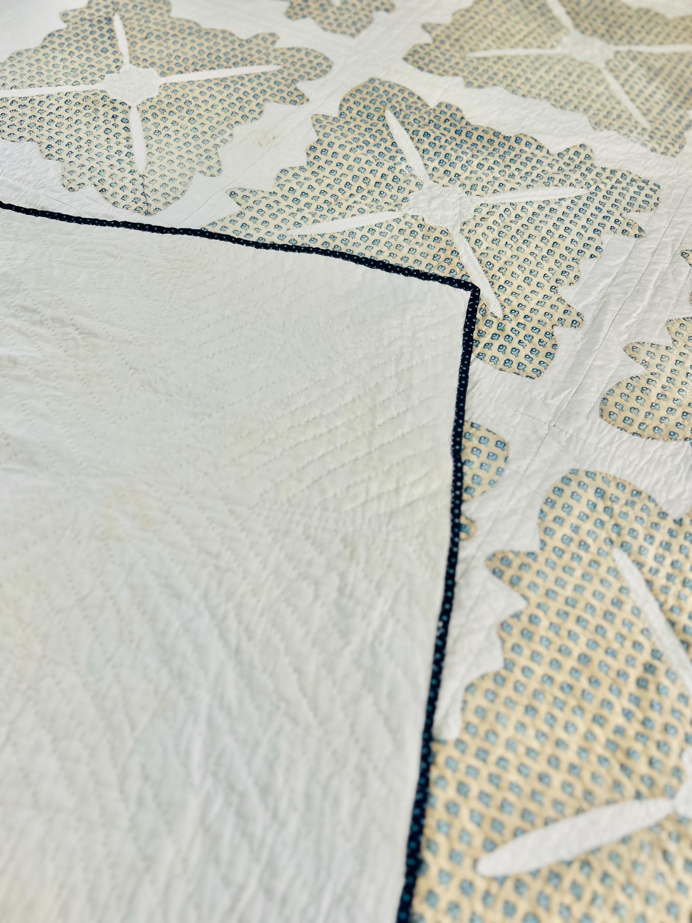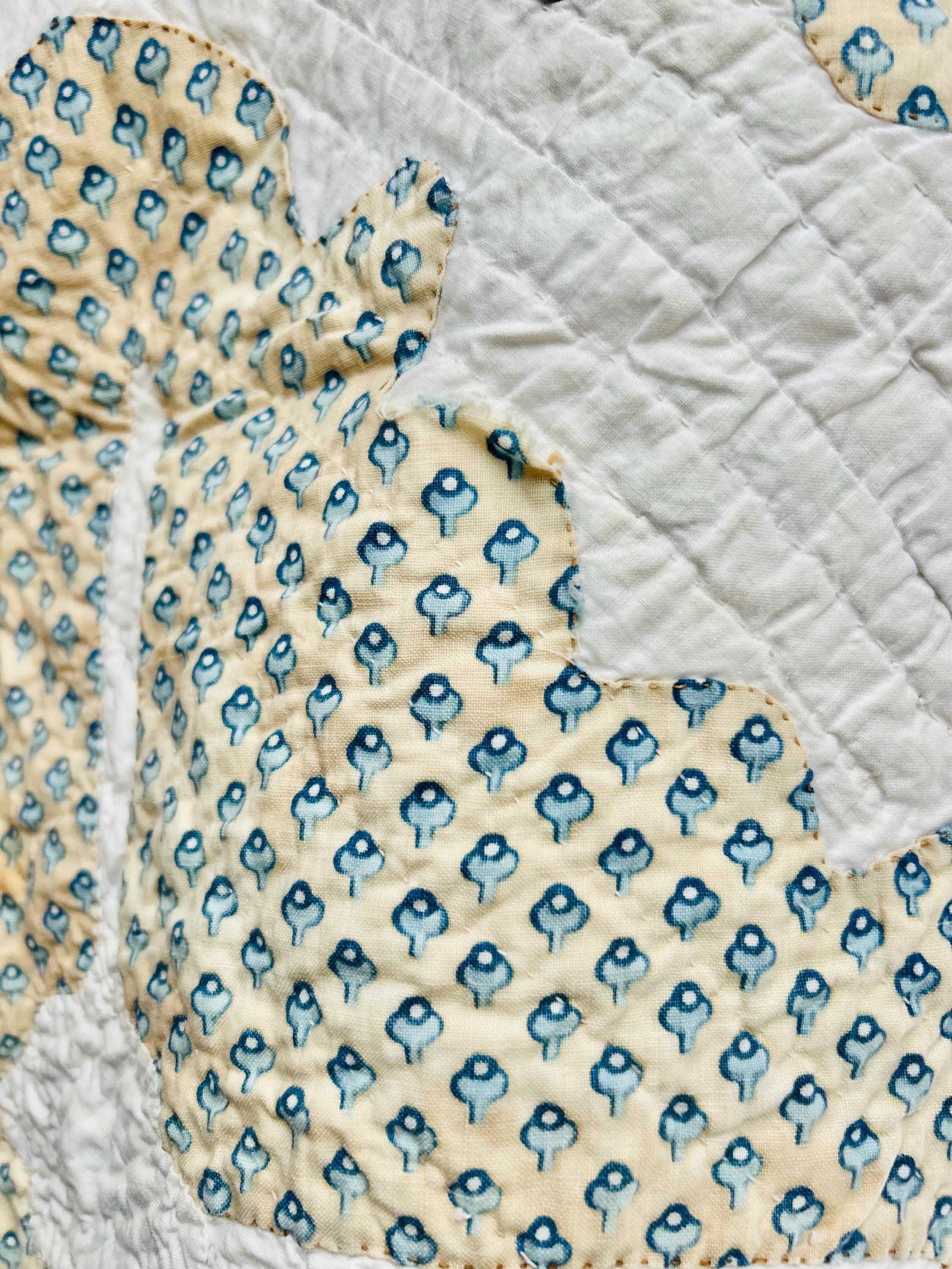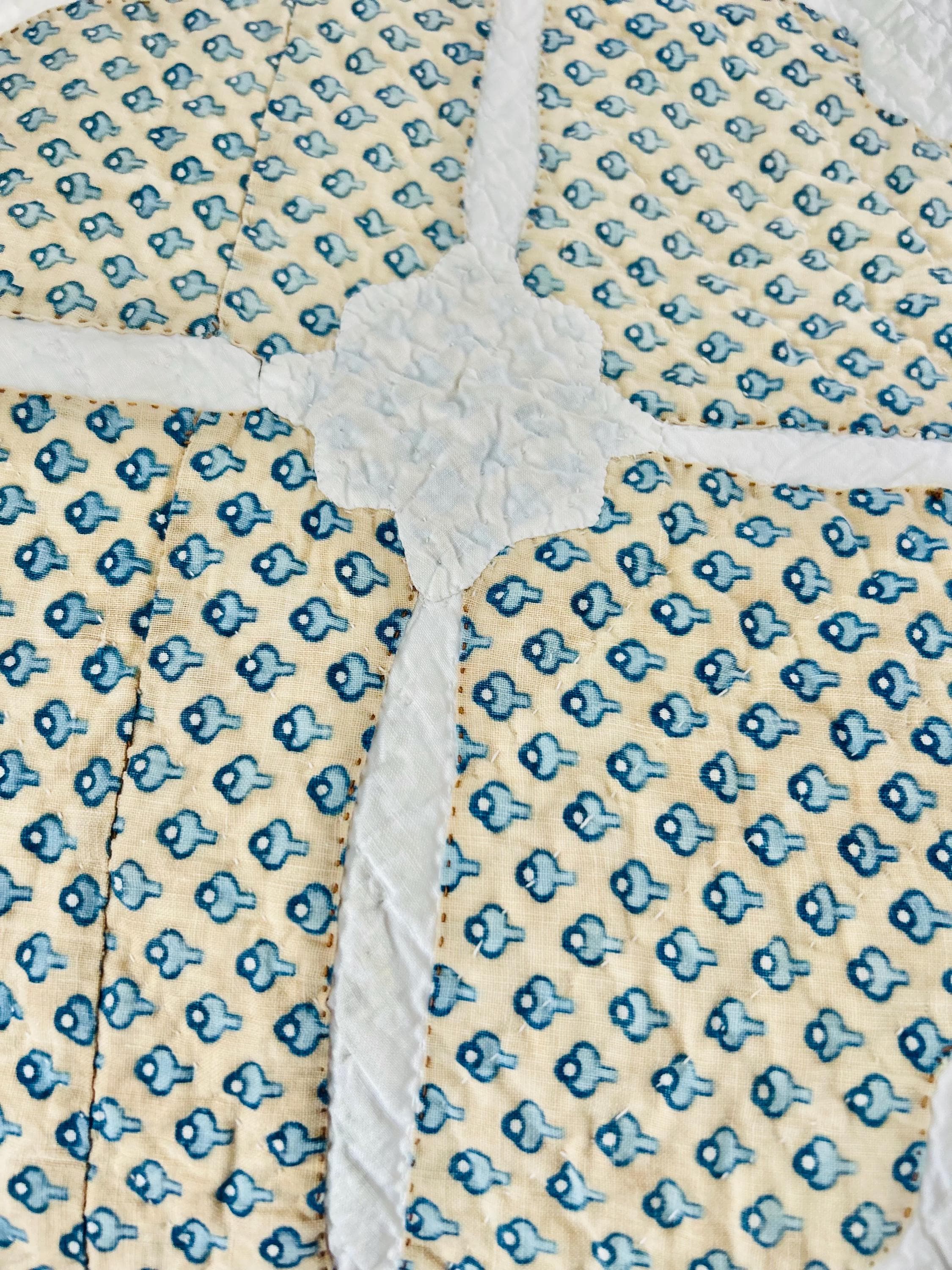 The quilt is in excellent antique condition with one small (half-inch) old repair to the front, some age-related fading of the fabrics and two small seam separations (see photos).